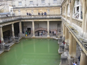 Après le repas, nous avons visité les bains romains. Pour les Romains, Bath était Agua Suilis. Ils baptisèrent ainsi la ville en raison des eaux chaudes minérales et bâtirent un complexe de thermes consacré à la déesse Minerve entre le 1er et le 5e siècle. Aujourd'hui on peut visiter un grand complexe et on peut voir les différentes stations qui servaient aux ablutions. La source d'eau chaude existe toujours et alimente les piscines mais il est interdit de s'y baigner. Par contre une petite fontaine permet de goûter à cette eau minéralisée, parait-il quiconque y trempe ses lèvres gagnera la jeunesse éternelle.