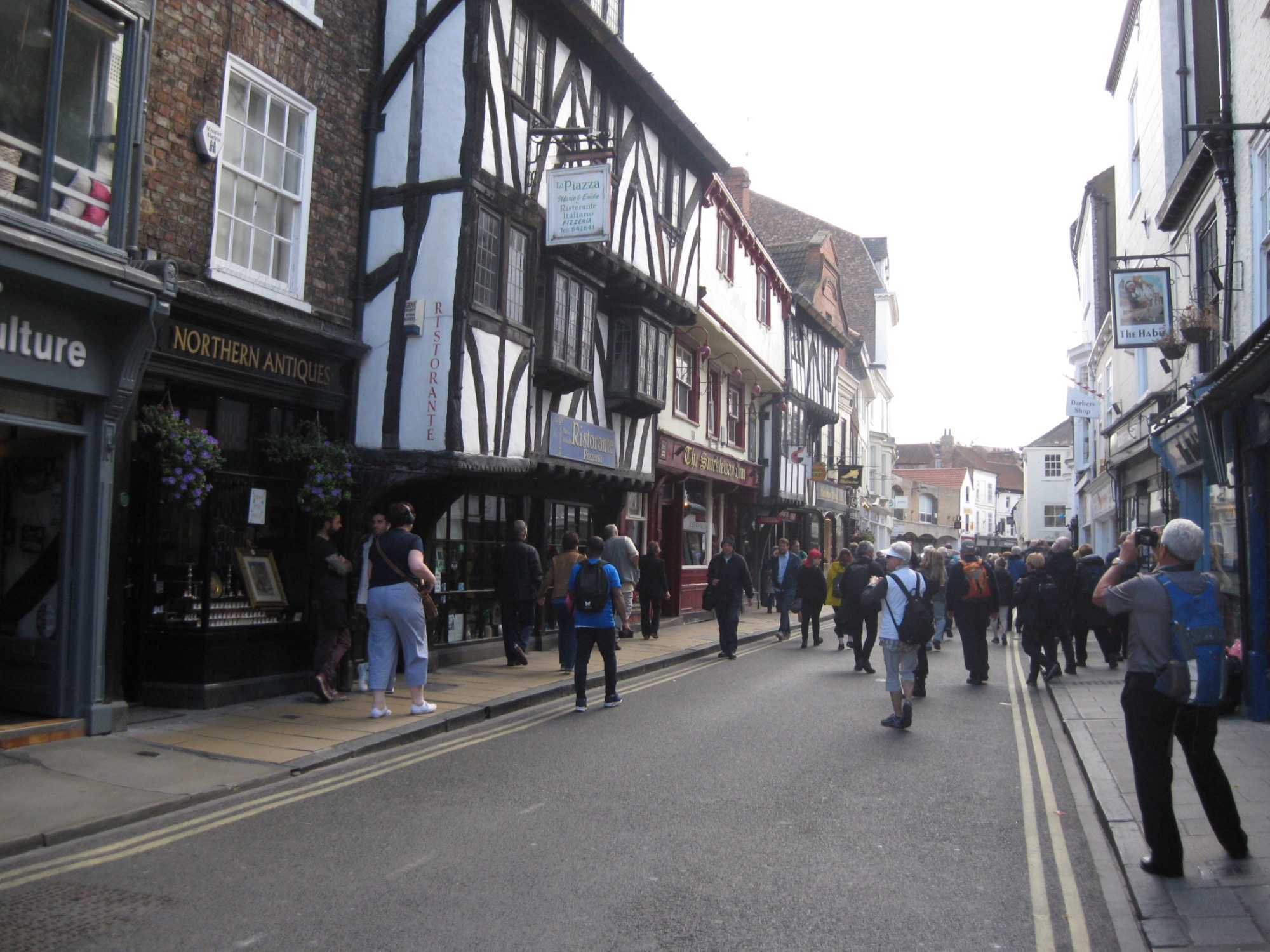"L'histoire de York est l'histoire est l'histoire de l'Angleterre" citait Georges VI. On dit que la ville compte 365 pubs donc un pour chaque jour de l’année. Chaque résident de la ville dans le passé, Romains, Vikings, Saxons, Géorgiens et Edouardiens ont laissé leurs empreintes dans l’architecture et l’organisation de la ville . On y retrouve un grand nombre de rues commerciales dont la fameuse rue des Shambles, qui est la plus ancienne et la plus pittoresque. On comprend facilement que l’organisation des Nations Unies, l’UNESCO, ait inscrit cette ville dans sa liste de «Ville du patrimoine mondial». Après ce premier aperçu de la ville, nous nous dirigés vers le Deans Court Hôtel pour notre repas du midi.