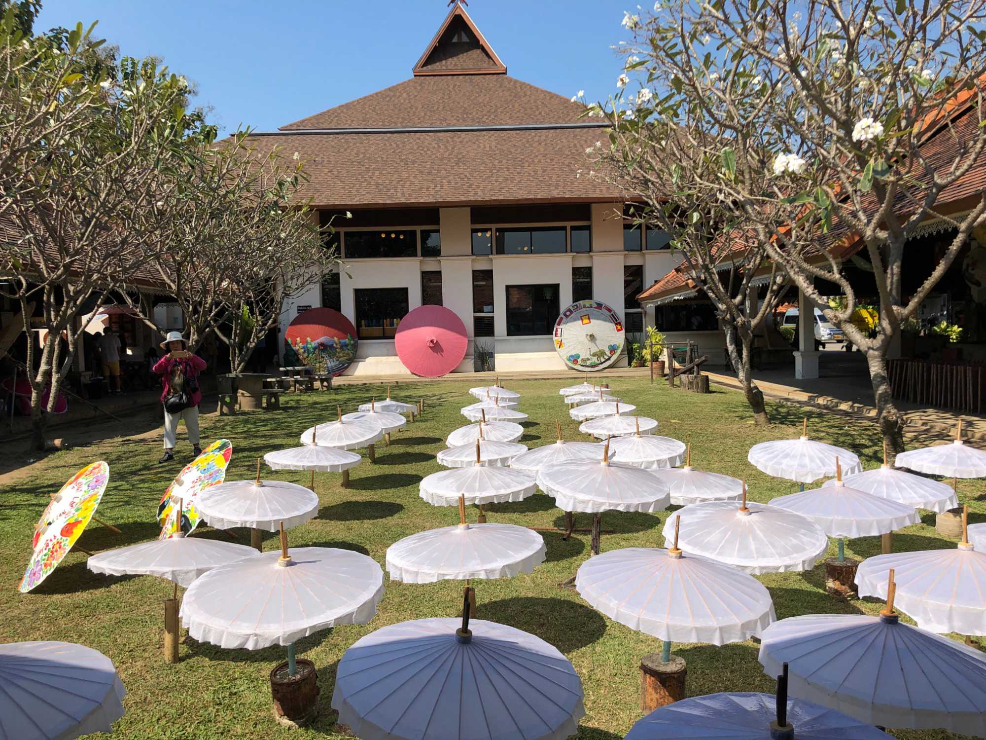 La troisième visite est celle de la fabrique d’ombrelles, toute en couleurs! Très appréciée de tous! Les étapes de fabrication sont encore ici, très faciles à suivre sur mes photos. Plusieurs des voyageurs en ont profité pour se faire fabriquer, pour quelques dollars et en quelques minutes seulement, une petite peinture sur un de leurs articles préférés. D’autres ont préféré faire ajouter un dessin sur leur sac de voyage ou bien sur un éventail qu’ils venaient d’acheter.