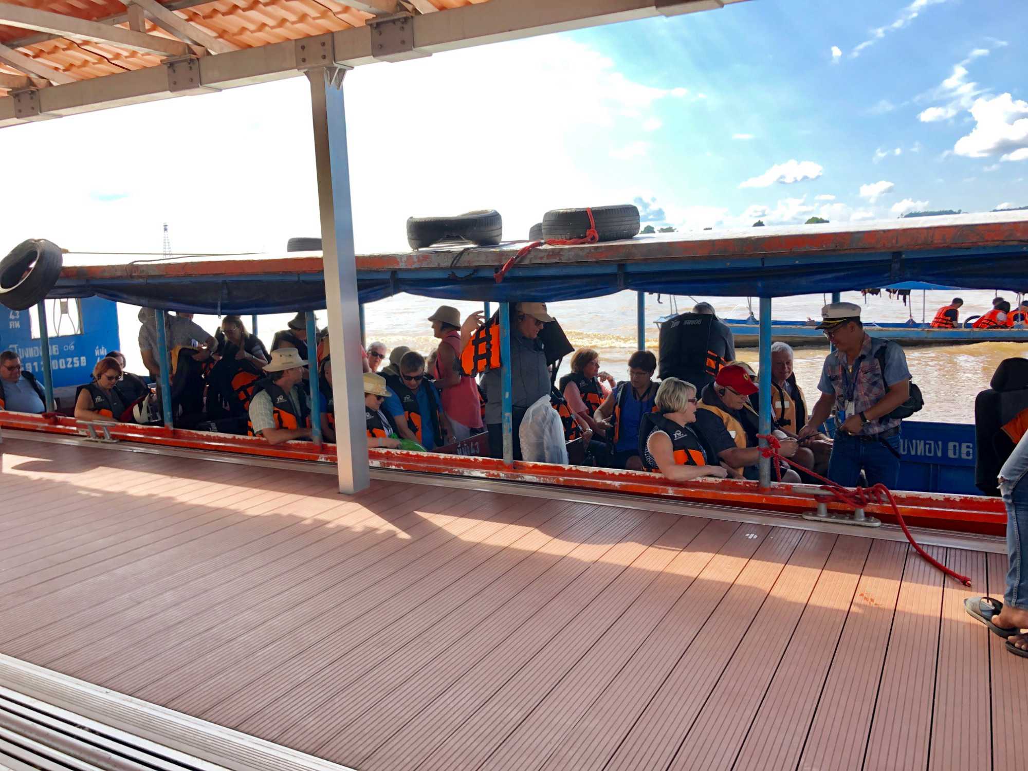 Notre arrêt pour le dîner était dans un restaurant avec vue sur le fleuve Mékong. Très paisible et la nourriture y était délicieuse. Ensuite, une superbe promenade en bateau sur le Mékong nous a permis de jeter un œil différent sur le Triangle d’or.