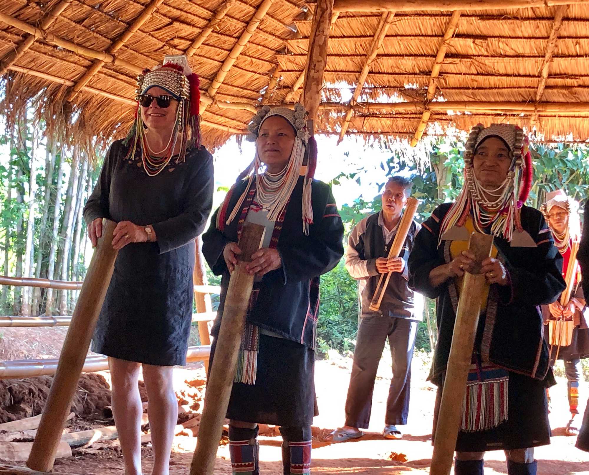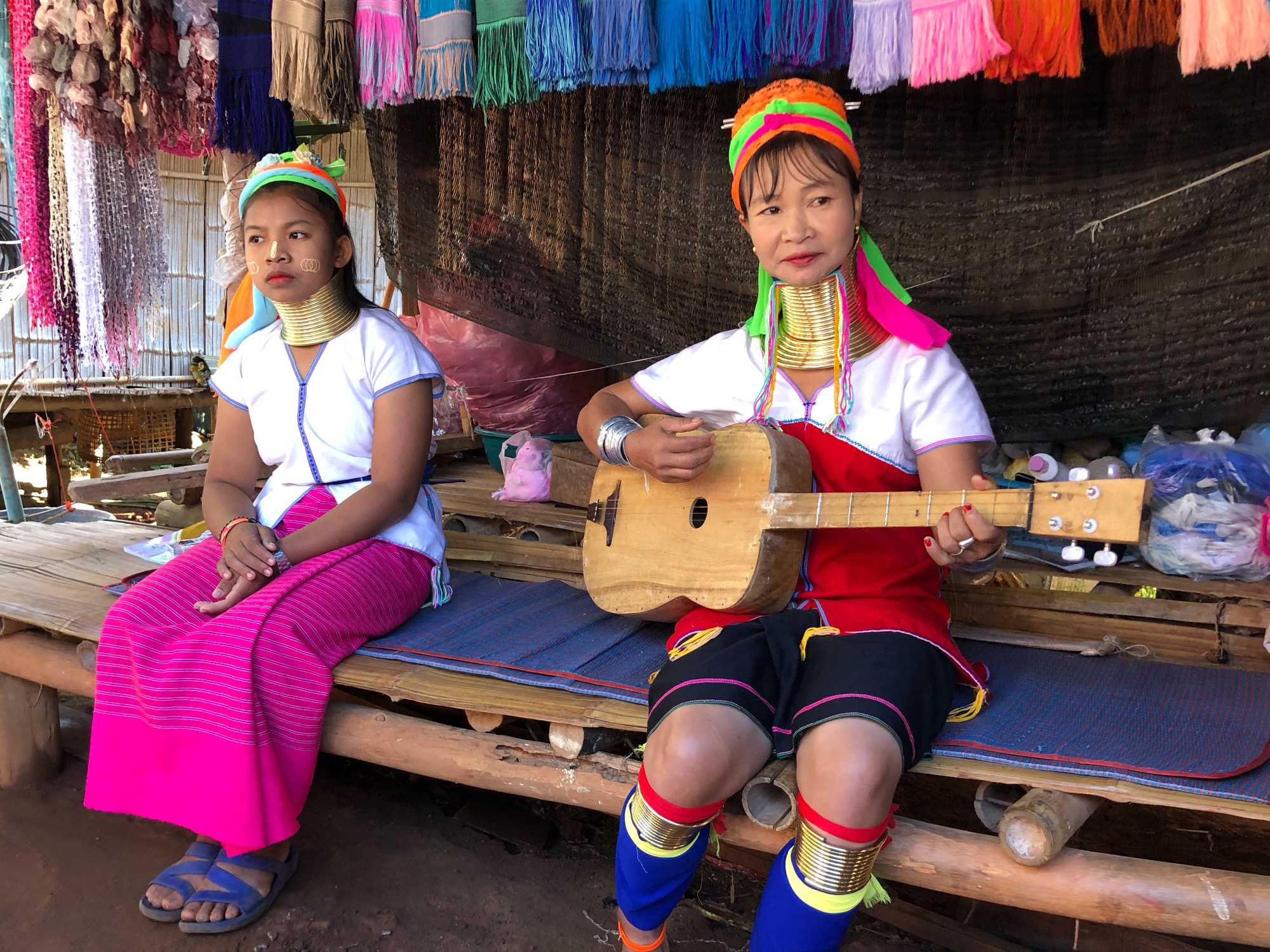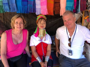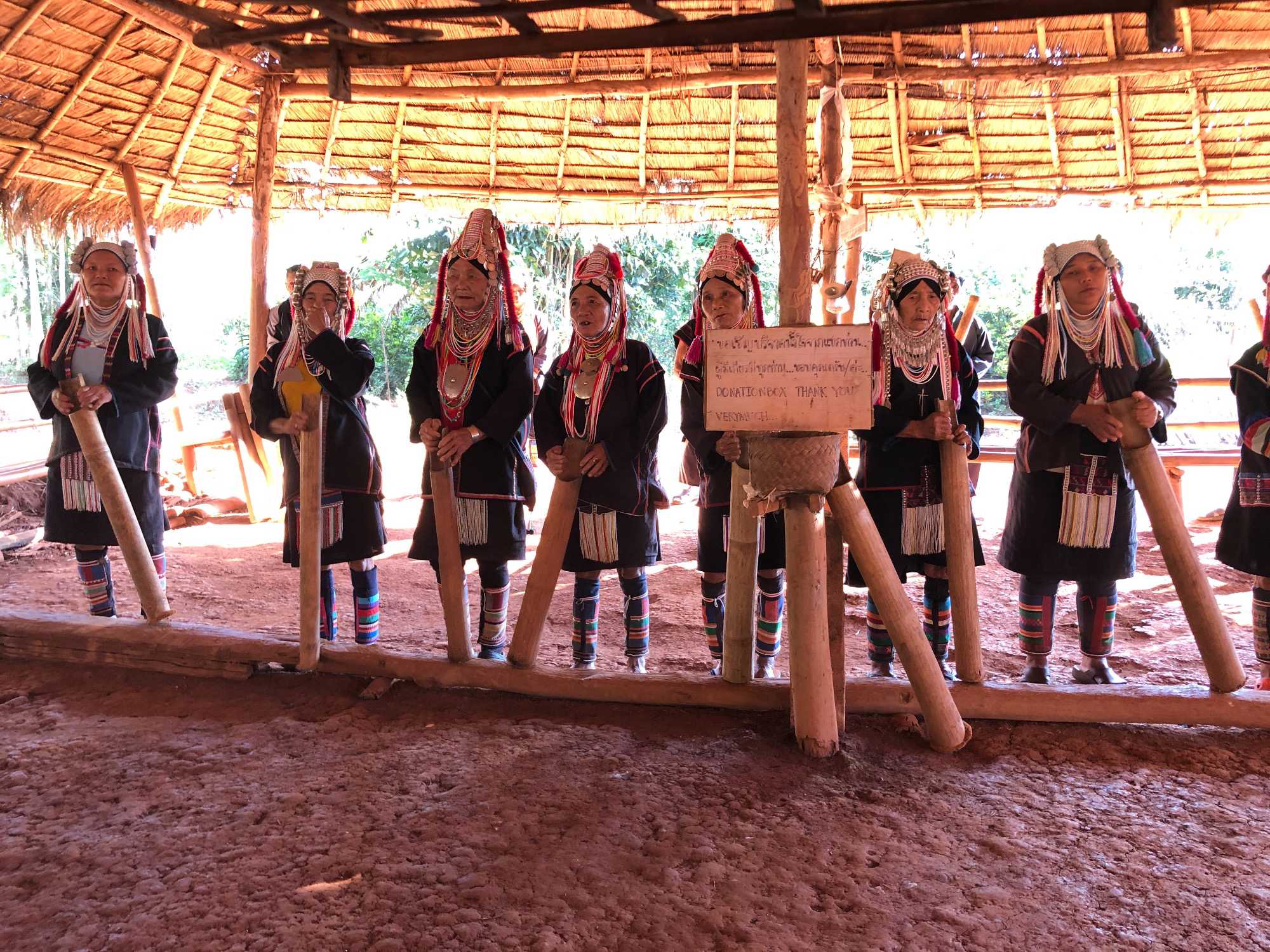 Aujourd’hui, nous sommes partis à la découverte des tribus montagnardes Akha, Yao et Kayor, Lahu et Karen (femmes au long cou). Les tribus du nord habitent dans la région septentrionale de la Thaïlande, entre Pai et Chiang Rai et la frontière du Myanmar. Ces groupes ethniques minoritaires ont de lointaines origines sino-tibétaines, même si la plupart des habitants émigrèrent en Thaïlande au XXe siècle, fuyant les conflits en Chine, au Myanmar et au Laos. Les tribus des collines appartiennent à différentes ethnies, possédant chacune un dialecte, des traditions et une organisation sociale propres. Elles habitent les versants et la jungle du nord de la Thaïlande, à proximité de la frontière du Myanmar. Particulièrement attachées à leur culture, sans doute en raison de l’isolement qu’elles ont subi par le passé, les femmes des tribus se distinguent par leurs tenues éclatantes.