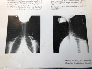 Nous avons marché dans le village et à quelques endroits nous avons eu droit à un mini-spectacle de chant et danse Akha. Vraiment très agréable cette balade au cœur des tribus montagnardes. La tribu qui nous a le plus marqué fût sans contredit la tribu des femmes au long cou ou femmes-girafes. C’est vraiment incroyable de voir ces femmes et de connaître l’histoire de cette culture tout à fait unique. Cette tradition débute dès qu’elles atteignent l’âge de 5 ans. À ce moment, un sage les orne de leur première parure au cou. Certaines fillettes sont ainsi ornées d’une spirale façonnée autour du cou pour former une dizaine d’anneaux. Mon frère nous explique que dans certains villages, c’est seulement les filles nées un mercredi qui sont « choisies » pour ce destin. La spirale est remplacée par une plus grande et plus lourde durant le développement de la fille jusqu’à l’âge adulte où la jeune femme se fait orner avec un collier permanent allant jusqu’à 25 anneaux et pouvant peser jusqu’à 10 kilos. Le poids des anneaux en cuivre ou en bronze, est supporté par la cage thoracique et compresse ainsi leurs épaules et leurs clavicules plutôt que d’étirer leur cou, comme on pourrait le penser. Leurs vertèbres se développent ainsi vers le bas leur donnant de très petites épaules arrondies, une poitrine presque inexistante, une posture droite et l’illusion d’un cou anormalement long.