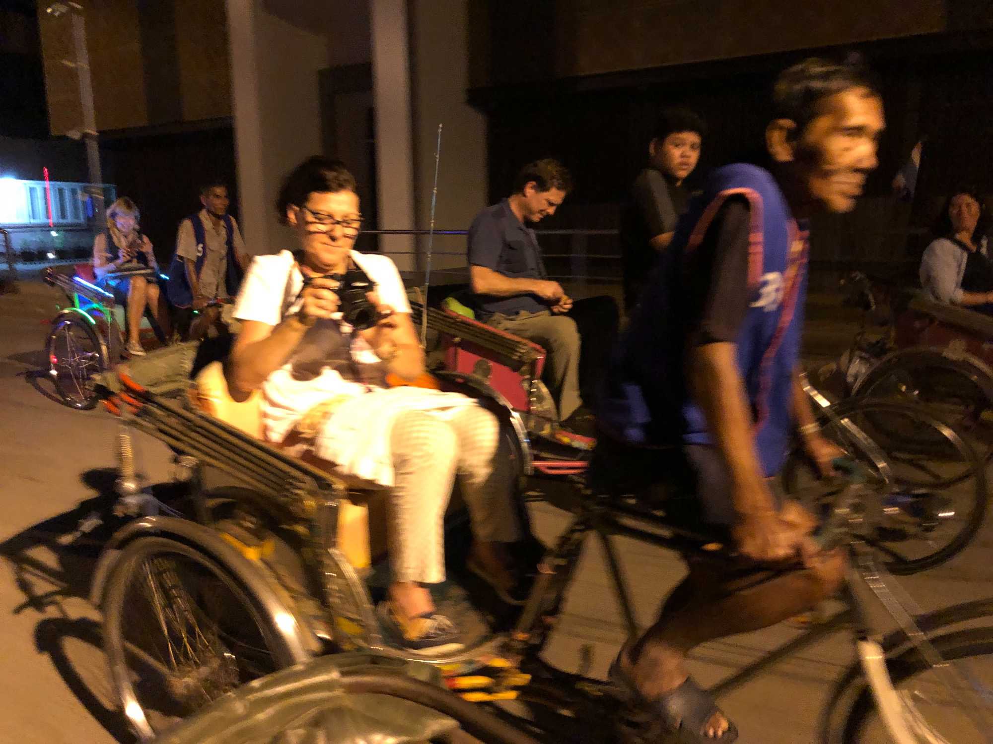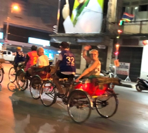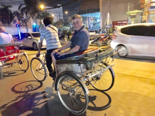 Après avoir bien bu et bien rigolé, nous traversons au marché des vêtements pour retrouver nos cyclo-pousses puis retour à notre hôtel pour un bon dodo bien mérité.