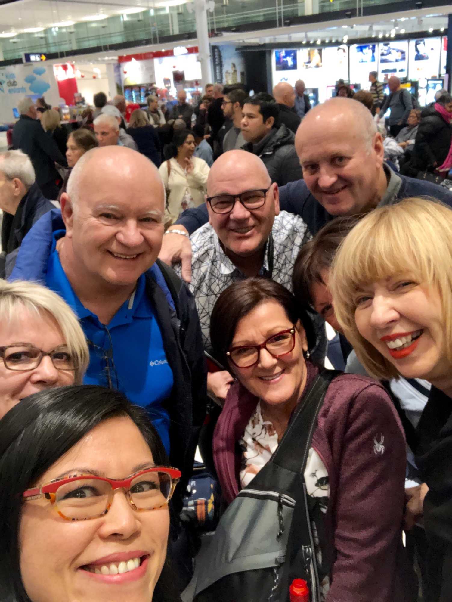 Aujourd’hui, notre voyage a commencé en quittant le seuil de notre porte de maison. Quelques clients ont le bonheur de bénéficier d’un transport du Centre du Québec jusqu’à l’aéroport. On se rencontre tous à l’aéroport de Montréal. L’enregistrement se fait bien et nous partons à l’heure, 20 h 00!