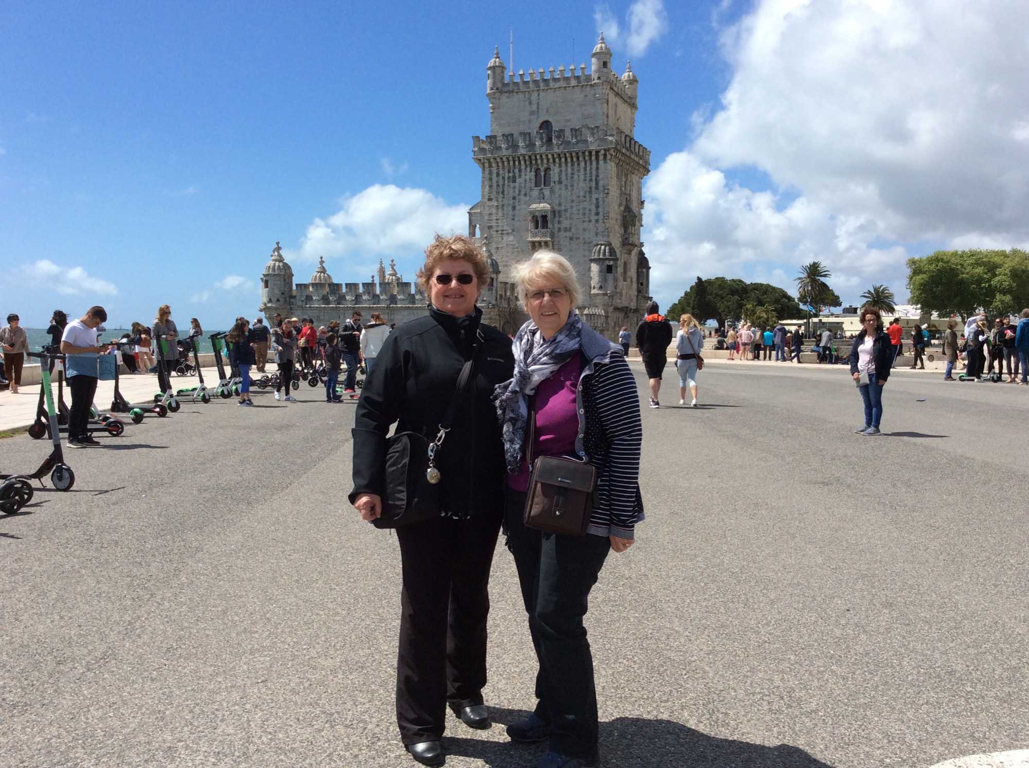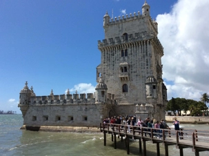 En plein soleil, notre excursion se poursuit le long des quais Belém où nous pouvons prendre des photos de la fameuse tour, monument historique très ancien. C’est un moment fort de cette petite marche, la Torre de Belém : c’est un superbe fort qui se trouvait autrefois en plein centre du Tage et qui défendait l’estuaire. La tour fut construite entre 1514 et 1520 pour protéger Lisbonne, c’est l'un des joyaux de l'architecture portugaise sous le règne de D. Manuel I.
