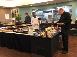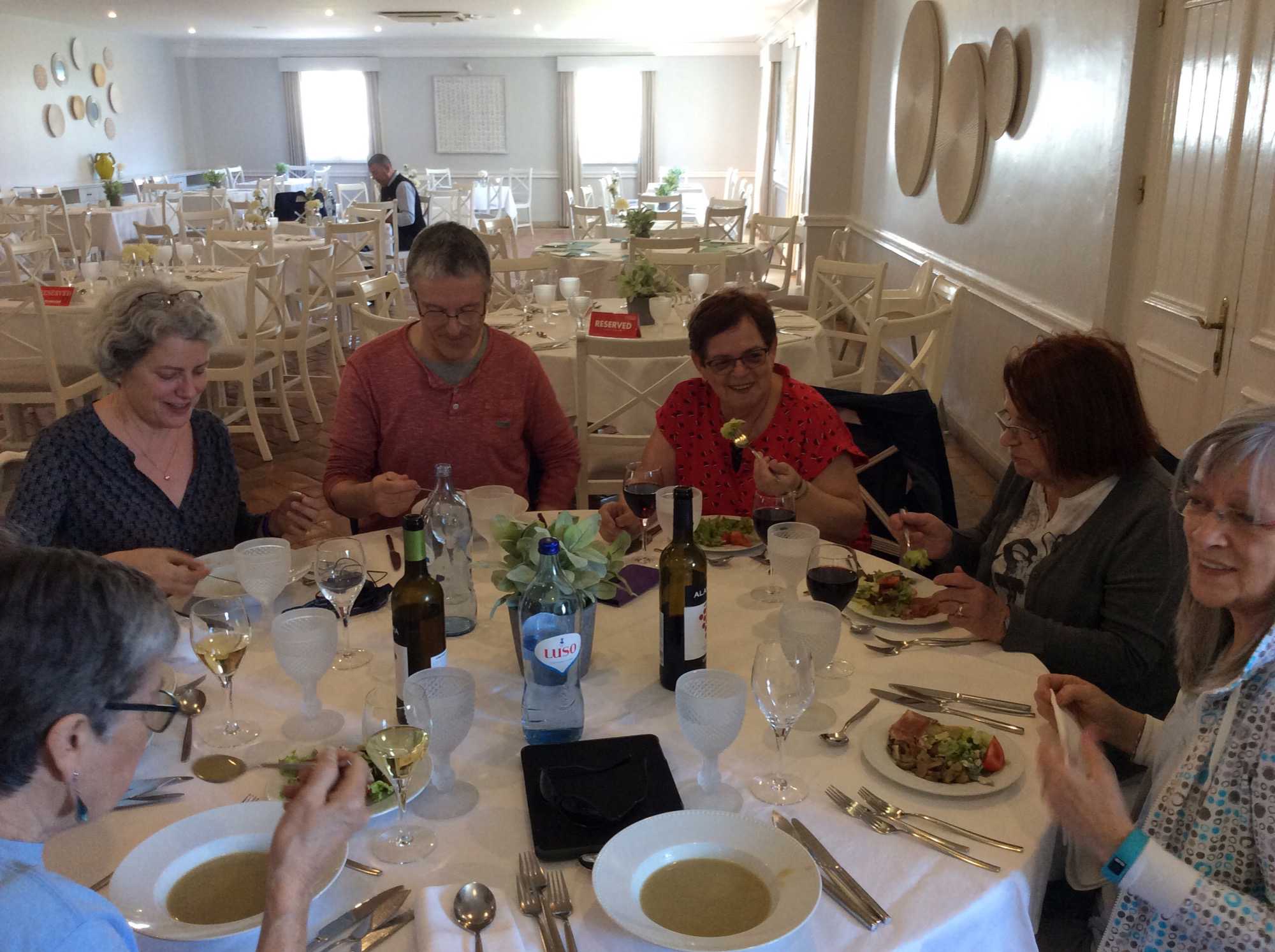 Francisco nous amène dîner au restaurant du complexe hôtelier Mar De Ar. Un excellent choix de salades, de légumes, de poisson, de viande et de desserts permet aux voyageurs de se régaler. Le tout est agrémenté d’un bon vin typiquement portugais.