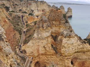 Ensuite, Francisco et Ruy, notre chauffeur, nous amènent explorer la Pointe de Notre-Dame de la Piété puis le cap de Ponta da Piedade. Nous y voyons une succession de grandes falaises érodées par les puissantes vagues de l’océan Atlantique dans lesquelles des arches, des grottes et des cavernes marines ont été creusées. Ponta da Piedade est souvent considéré comme le meilleur attrait naturel de l’Algarve. Nous avons pu y admirer la roche rougeâtre des falaises, sculptées par l’océan en blocs aux formes morcelées, où se nichent les fantastiques grottes marines. En haut des falaises, on trouve des chemins côtiers et des escaliers qui descendent à la base des falaises. Plusieurs voyageurs descendent les nombreuses marches d’un escalier sculpté à même la falaise pour aller marcher sur la plage et voir ce paysage hors du commun : la promenade des grottes. Nous avons pu y faire de superbes photos!