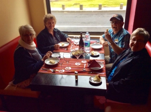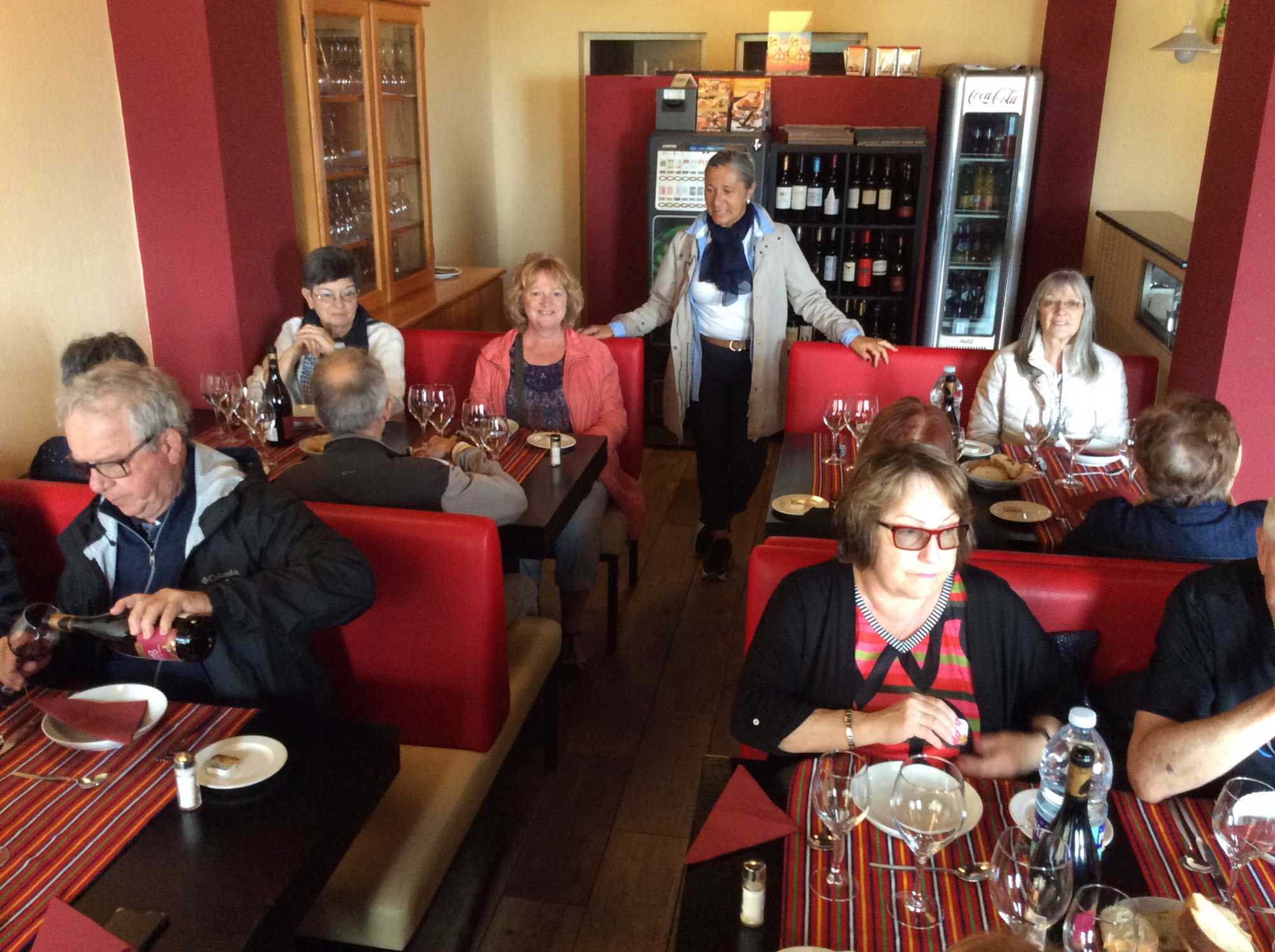 Ce soir c’est une soirée spéciale qui nous attend. Nous partons avec Carlos, notre chauffeur et Cristina, pour se rendre à une soirée folklorique. Nous sommes accueillis avec un apéritif avant de se faire servir d’immenses brochettes de boeuf suspendus à des crochets au milieu de la table. Tout au long du souper, nous assistons à un spectacle de danseurs folkloriques, chanteuses et musiciens. Esther et Denise ont été invitées à se joindre aux danseurs le temps d’une danse. Nous les avons applaudi chaleureusement. À la fin du spectacle, un danseur est venu me chercher pour monter sur scène puisque c’est mon anniversaire de naissance. Les danseurs et chanteurs ont entonné "Bonne Fête" en choeur! Je vais garder un beau souvenir de cet anniversaire!