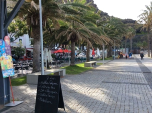 Nous traversons à nouveau les montagnes par la route menant à Cabo Girao situé sur la côte Sud. De ce côté de l’île, le climat est plus chaud et la majorité de la population y habite. On y trouve la capitale, Funchal. Nous allons à la falaise pour monter sur le belvédère. De là, on bénéficie d'une vue époustouflante sur la mer depuis la plateforme d’observation. À une altitude de 580 mètres, c'est le plus haut cap d'Europe et le troisième du monde.