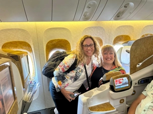 Après une petite pause estivale de longs voyages, pour m’accorder du temps de création, de planification, d’organisation, de gestion et de petites douceurs avec mes trois merveilleux chats Mainecoon, c’est avec un immense plaisir que j’ai retrouvé les voyageurs à l’Aéroport Montréal/Trudeau pour cette fabuleuse destination qui me hâte de redécouvrir. Je peux vous confier que je suis une passionnée d’Afrique et particulièrement de ce superbe circuit que je ne cesse d’améliorer. Nous serons un beau groupe de 17 voyageurs + moi et Louise Gobeil. Les deux Louise partent à nouveau en Afrique. C’est toujours un bonheur pour moi d’accompagner avec la complicité de ma grande amie Loulou. Les voyageurs seront bien servis et nous aussi car tous sont de bien bonne humeur ce matin à leur arrivée à Montréal Trudeau. Notre vol d’une durée de 12 h 10 heures vers Dubaï avec la compagnie Emirates s’est très bien déroulé et comme c’était un vol de jour nous n’avons pas vraiment dormi. Je suis à l’instant à Dubaï pour vous écrire ce récit et nous avons hâte après ce temps d’attente de 2h 30 de reprendre le prochain vol pour cette fois-ci se laisser aller à dormir. Le service à bord est excellent et nous espérons que le 9 h 40 qui nous sépare de la belle région du Cap en Afrique du Sud se passe aussi bien que celui-ci. L’aéroport de Dubaï est immense et nous avons pris le train entre deux terminaux. Les boutiques de luxe se succèdent mais nous n’avons pas le temps. Mais oui le temps pour regarder seulement et heureusement car juste à regarder les photos vous verrez que ce n’est pas pour toutes les bourses. Lucie a bien regardé les sacs à main chez Dior mais elle est aussi ressortie rapidement avec le sourire ne voulant pas se laisser tenter 😊