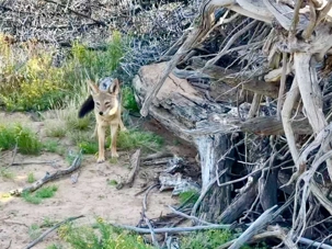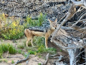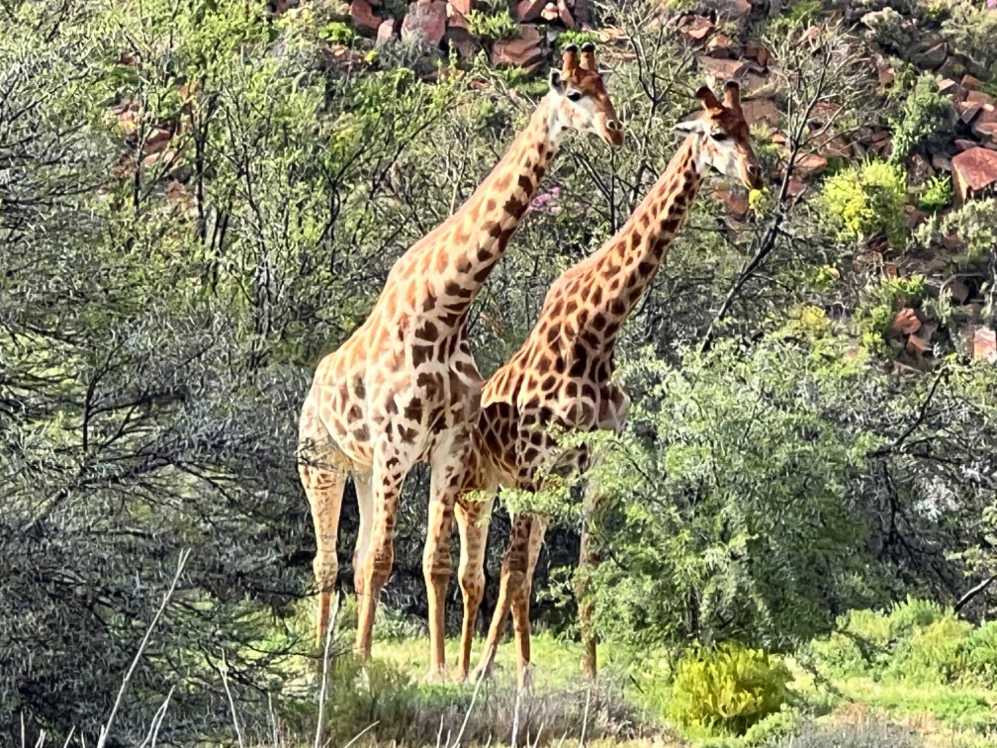 Nous avons débuté en force ce matin! Nous avons rencontré une maman chacal sur la route avec ses 4 bébés trop mignon… elle a caché ses bébés et elle tentait de nous éloigner de ses bébés. Vous aurez une photo de la maman mais les bébés sont dans notre mémoire. Par la suite nous avons trouvé un grand groupe de girafes qui prenaient leur petit déjeuner. Elles sont si majestueuses ces belles girafes. Un peu plus loin nous avons croisé un groupe de rhinocéros blancs, une maman et ses deux bébés, un né l’année dernière et l’autres né en juillet. Notre guide nous mentionnait que c’était rare que l’adolescent né l’année dernière soit encore là car normalement la maman le pousse loin du nid familial lorsqu’elle donne naissance au bébé suivant. Mais ce matin il était revenu ou n’a jamais quitté, qui sait…. Nous avons aussi vus quelques antilopes et des oiseaux de proie.