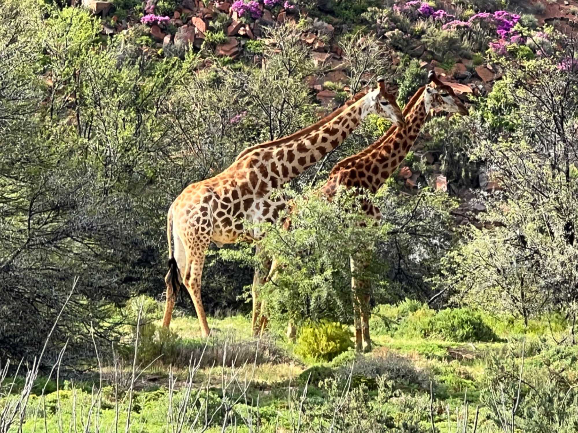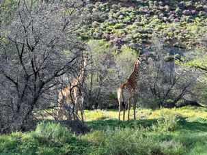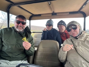 Ce n’est pas très difficile de se lever très tôt quand l’on sait ce qui nous attend comme exceptionnelle journée ! un petit café et hop nous voilà prêt à partir pour un safari à la rencontre des animaux de la réserve en tout début de journée. Nous étions bien habillés car ce matin ce n’est pas chaud du tout. On endure nos vêtements chauds surtout lorsque nous circulons en jeep mais le soleil est splendide et les fleurs commencent à s’ouvrir. L’on apprend que certaines plantes se ferment pour la nuit et se réouvrent le matin. Nous sommes aussi dans un endroit très spécial pour les plantes avec des plantes préhistoriques qui prennent des centaines d’années à croître. Une des ranchers est une passionnée de plantes et nous apprend plein de choses à leur sujet.