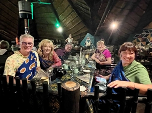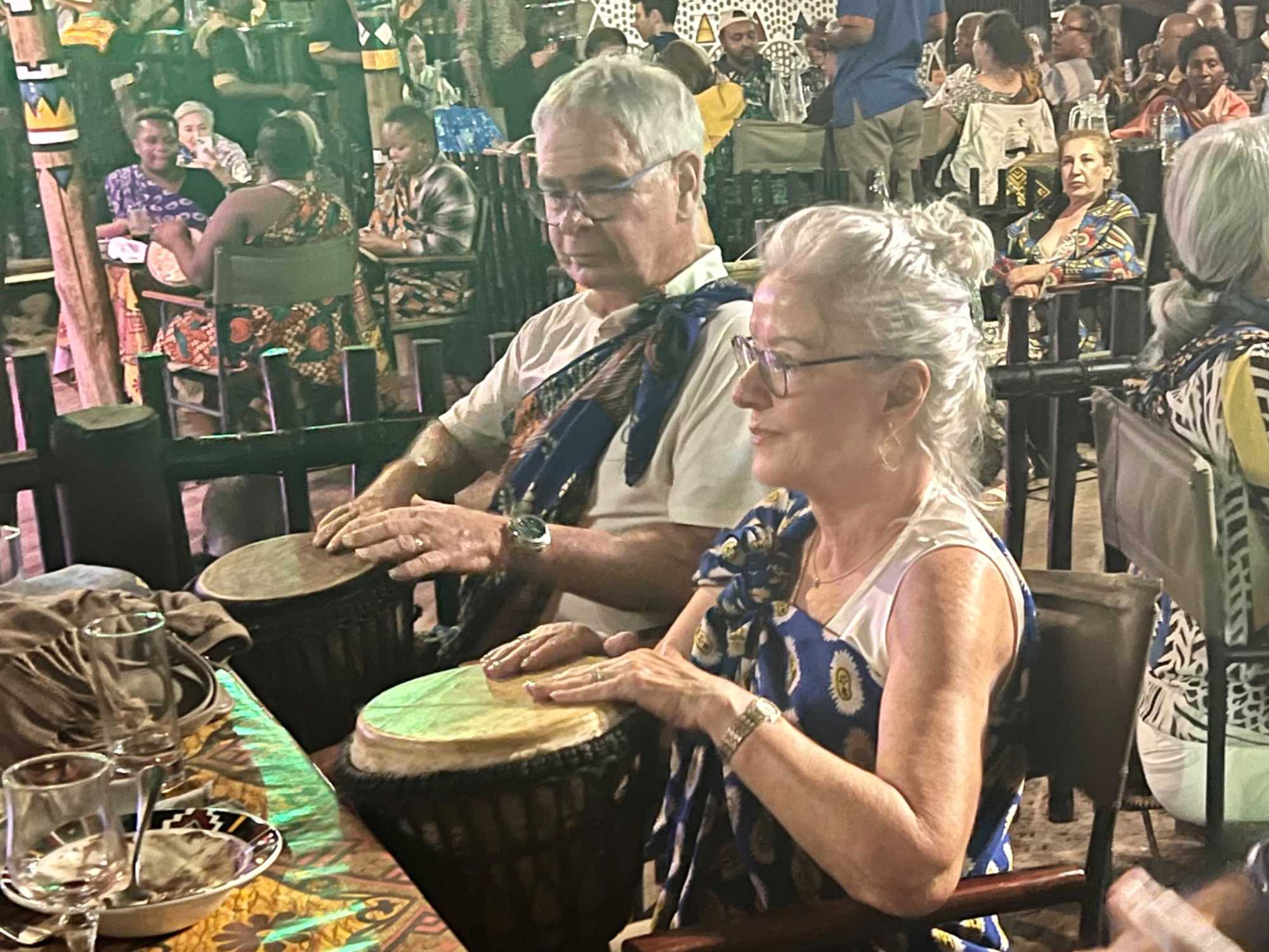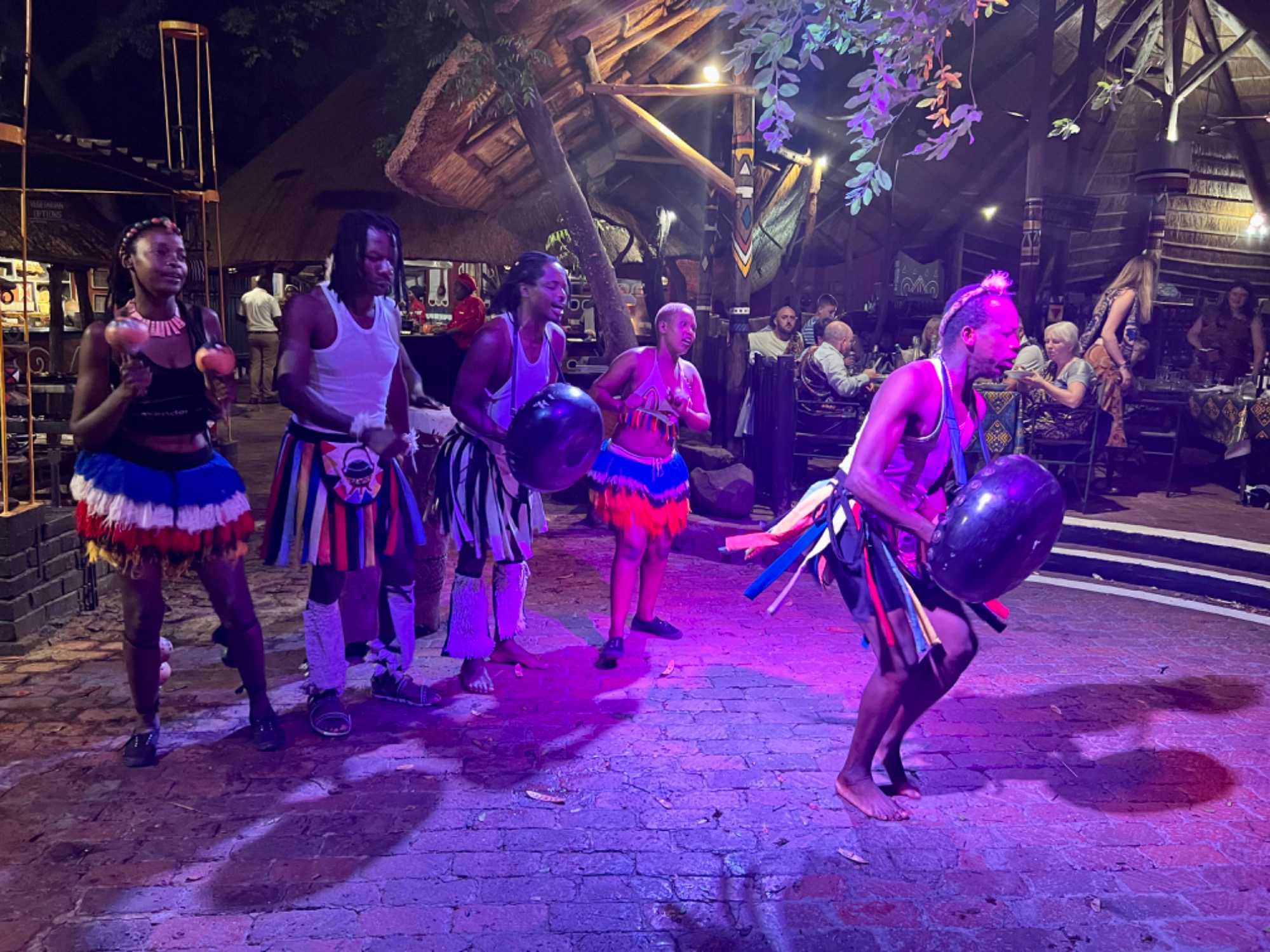 Victoria Falls, qui demeure un village de petite taille même si ses chutes sont de renommée internationale. Victoria Falls a conservé son charme de petite bourgade africaine, très animée, parsemée de marchés artisanaux, et où il est encore fréquent de croiser les éléphants en chemin vers la rivière. Souper de retrouvaille dans une ambiance africaine à ne pas manquer lors d’un passager aux chutes Victoria, avec le groupe de Louise Gobeil. Nous avions tellement d’aventures à se raconter et d’autres à vivre encore pour les deux prochaines journées ! Nous avons découvert plusieurs belles facettes de la culture et de la gastronomie africaine sans oublier le cours de tamtam que nous avons eu au cours de la soirée.