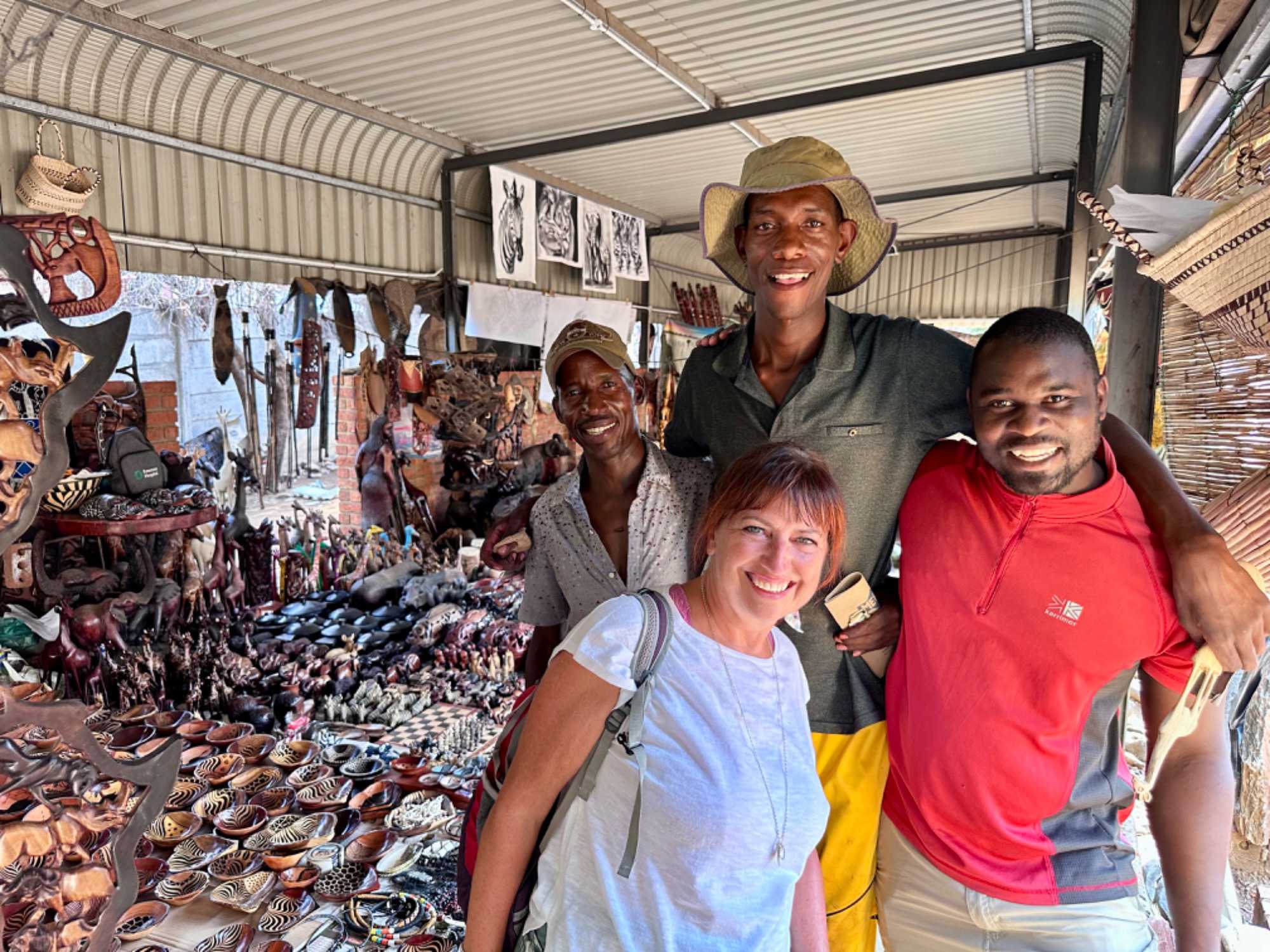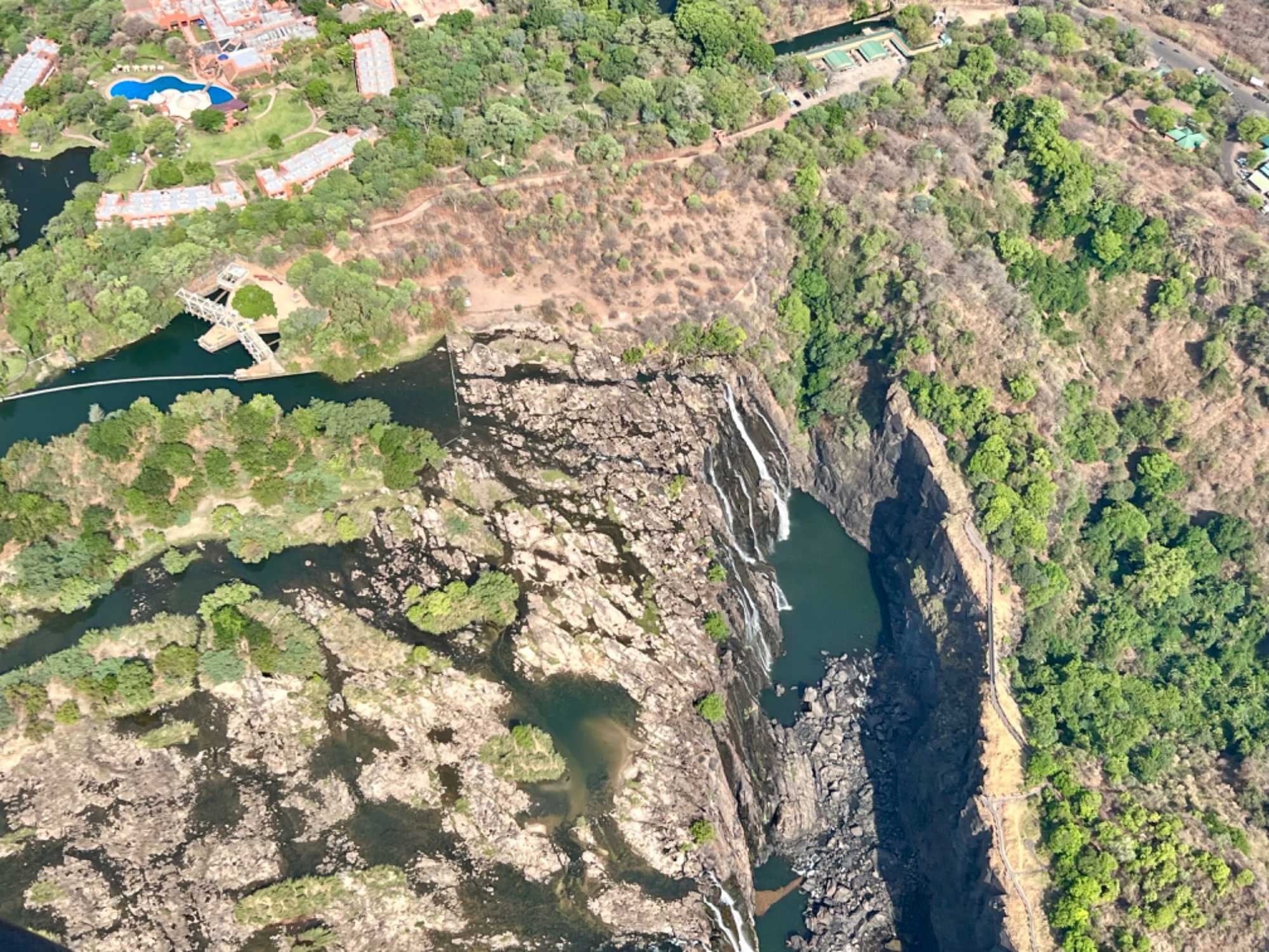 Inutile de vous dire que ce fut une expérience inoubliable qui nous a permis de survoler la faille qui, suite à un mouvement de terrain, créa les chutes et les gorges du Zambèze. C’est la plus grande et la plus belle cataracte du monde. Nous avons pu voir des arcs-en-ciel se dessiner sur les chutes, visions éthérées surgissant au milieu du fracas et de la violence des flots et provocant un nuage de brume nacrée visible à des kilomètres à la ronde. Pour les autres qui ne faisaient pas l’hélicoptère, un période de magasinage était au programme afin de finaliser quelques petits souvenirs. Pour ceux qui participaient à l’excursion du survol ce fût après le magasinage. On trouve de bien belles pièces fabriquées sur place au Zimbabwe.