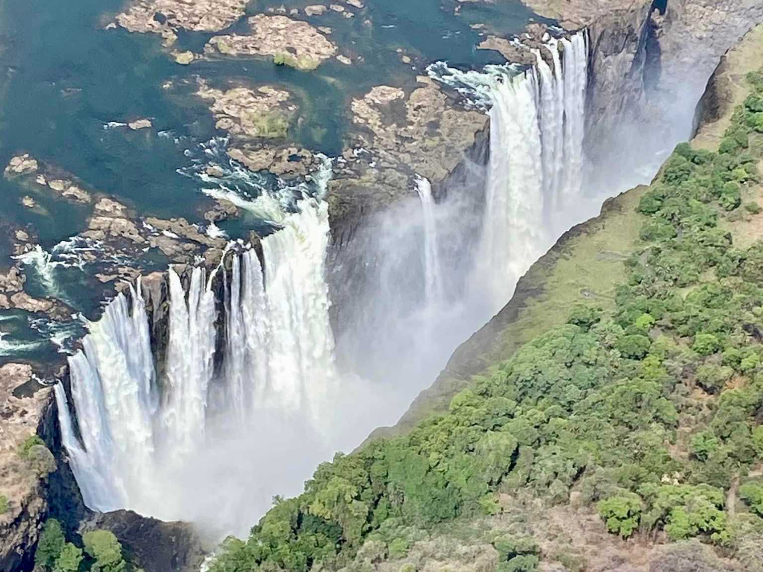 Douze de mes voyageurs ont eu la chance de survoler les chutes en hélicoptère en après-midi.