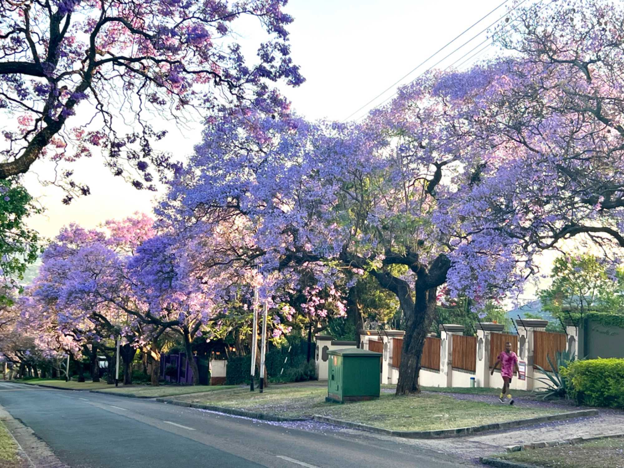 Située à une altitude plus basse, Pretoria est plus chaude d'environ trois degrés que Joburg, de sorte que les jacarandas fleurissent généralement au moins deux semaines plus tôt qu'à Joburg. La fin du mois d'octobre est généralement la meilleure période pour se rendre dans le nord et profiter des célèbres averses violettes de Pretoria et nous y étions, c’était superbe. Nous avons pris plusieurs photos mais qui ne donnent jamais ce que nous avons vus.