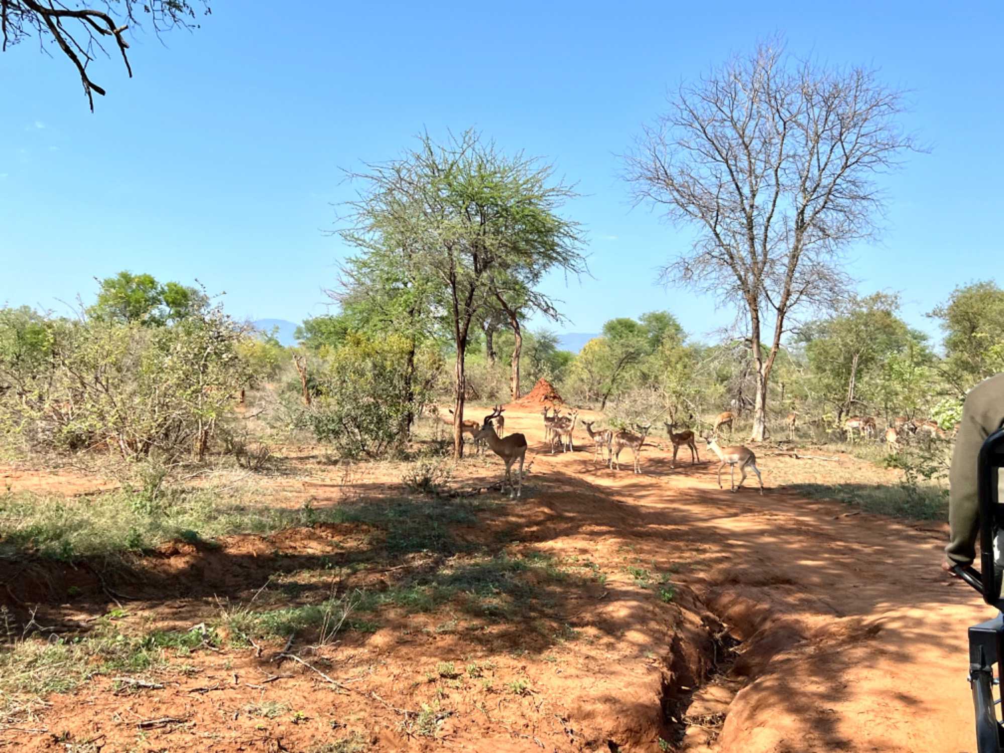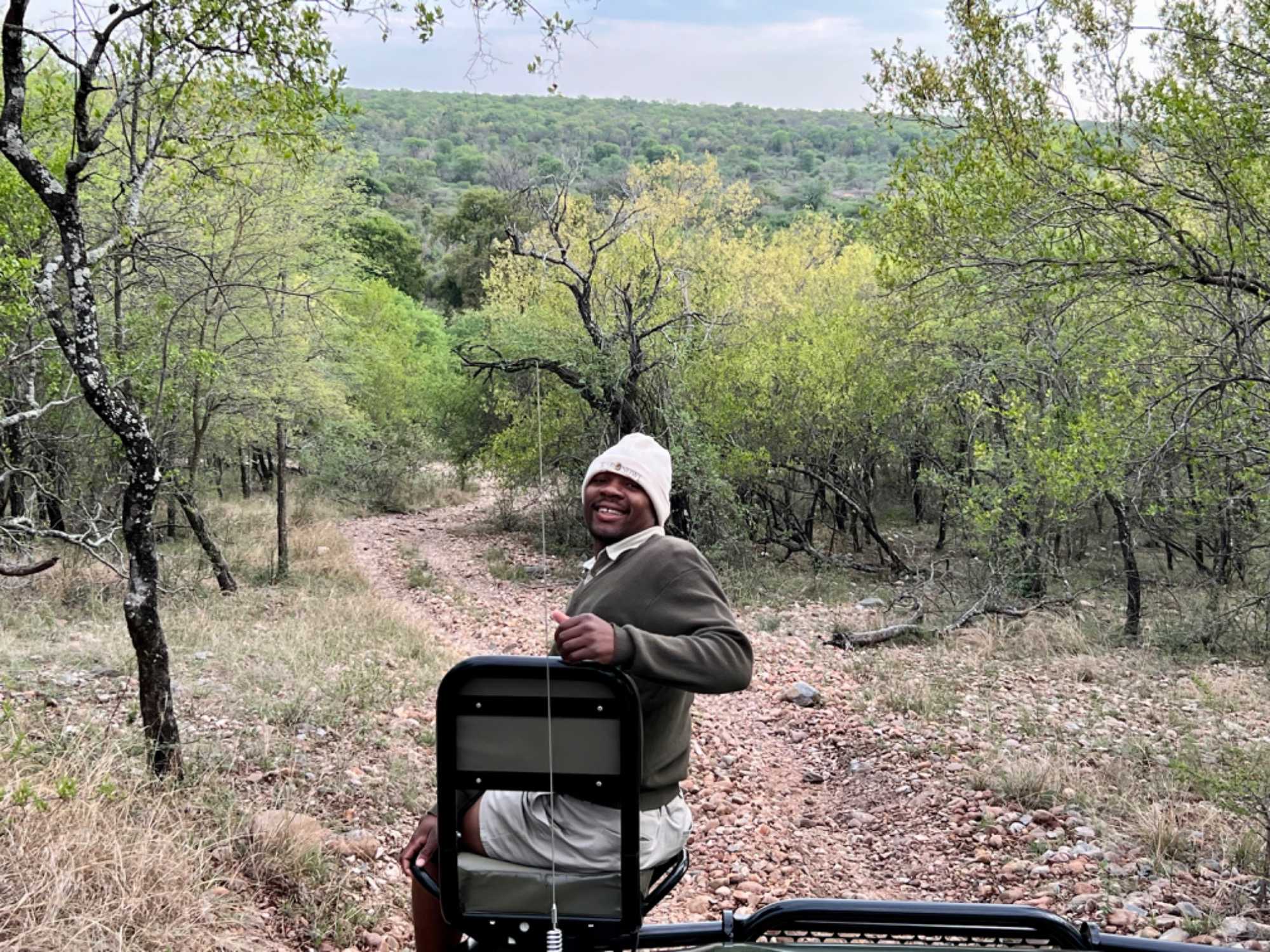 Après une bonne nuit de sommeil mais un réveil un peu tôt avec les cris des singes dans la brousse, on se lève finalement à 5h00 am pour notre safari du matin. Notre pisteur Lucky et notre guide et chauffeur Adolph seront au RV avec leur jeep pour ce merveilleux début de journée.