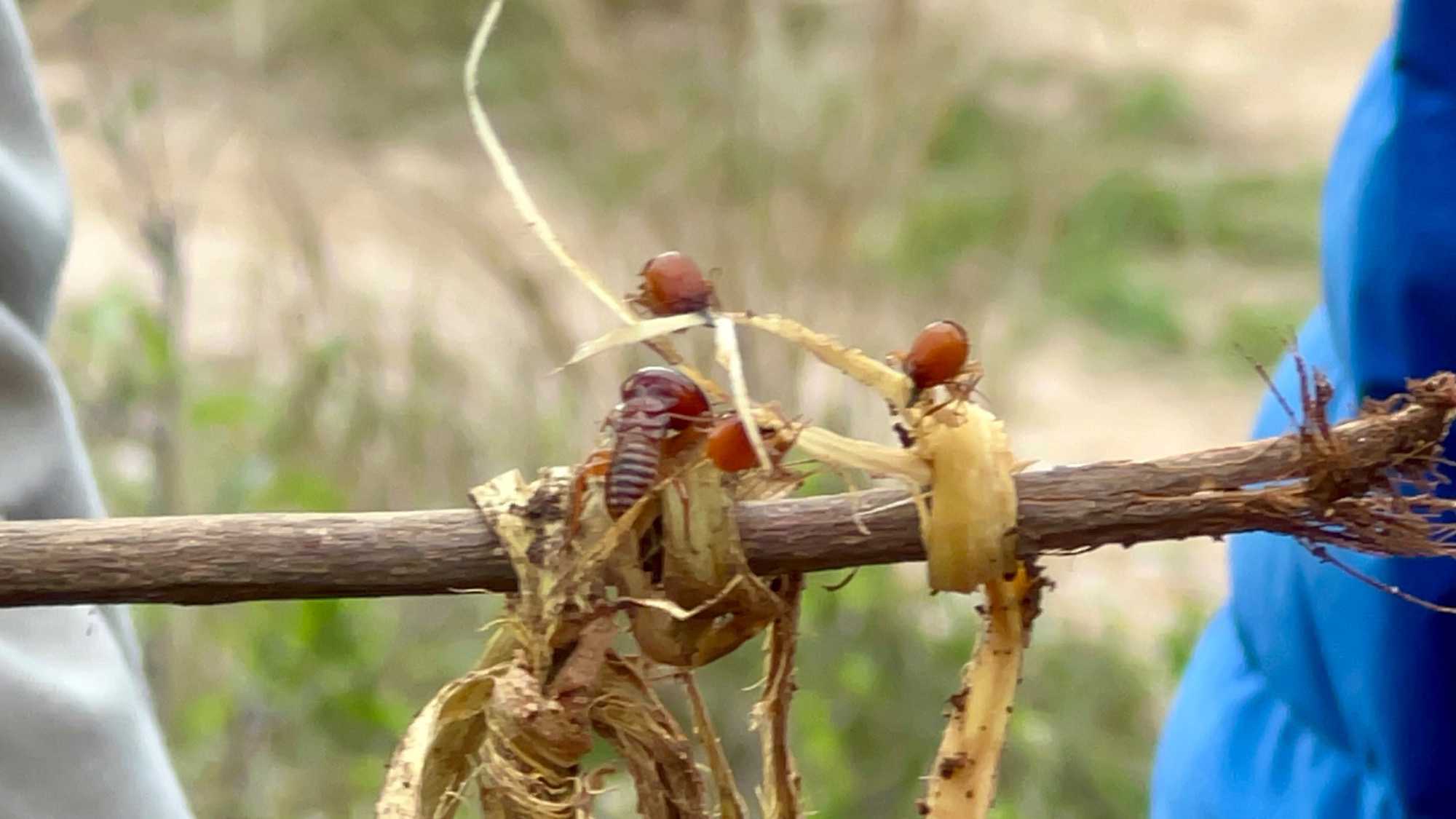 Ce matin il y aura beaucoup d'enseignement écologique. Les différents arbres, les termitières, les plantes et leur utilitées seront à l'honneur mais ce qui sera encore plus fascinant c'est les infos sur la termitière. Adolph, notre guide, aura tôt fait d'aller chercher ces spécimens dans leur termitière et nous montrer la différence entre certaines dont les fameux soldats que vous pourrez voir sur les photos( ce sont les plus grosses de la bande).