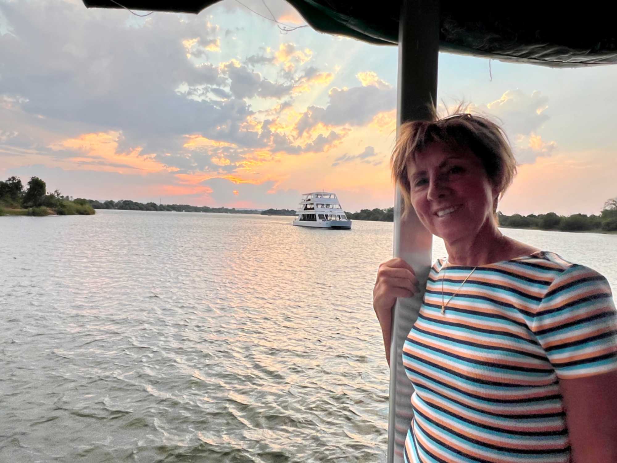 Comme nos amis ont fait une croisière dans les jours précédent, nous 4 partions, après le dîner, faire une croisière sur le fleuve Zambes pour aller observer les hippopotames, crocodiles ou autres et ce au coucher du soleil. Belle petite croisière relaxe et en agréable en bonne compagnie. Même si on a eu à un certain moment une pluie torrentielle, ce fut tout de même agréable.