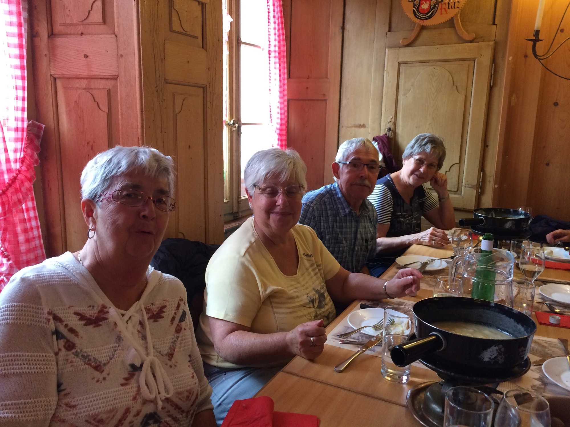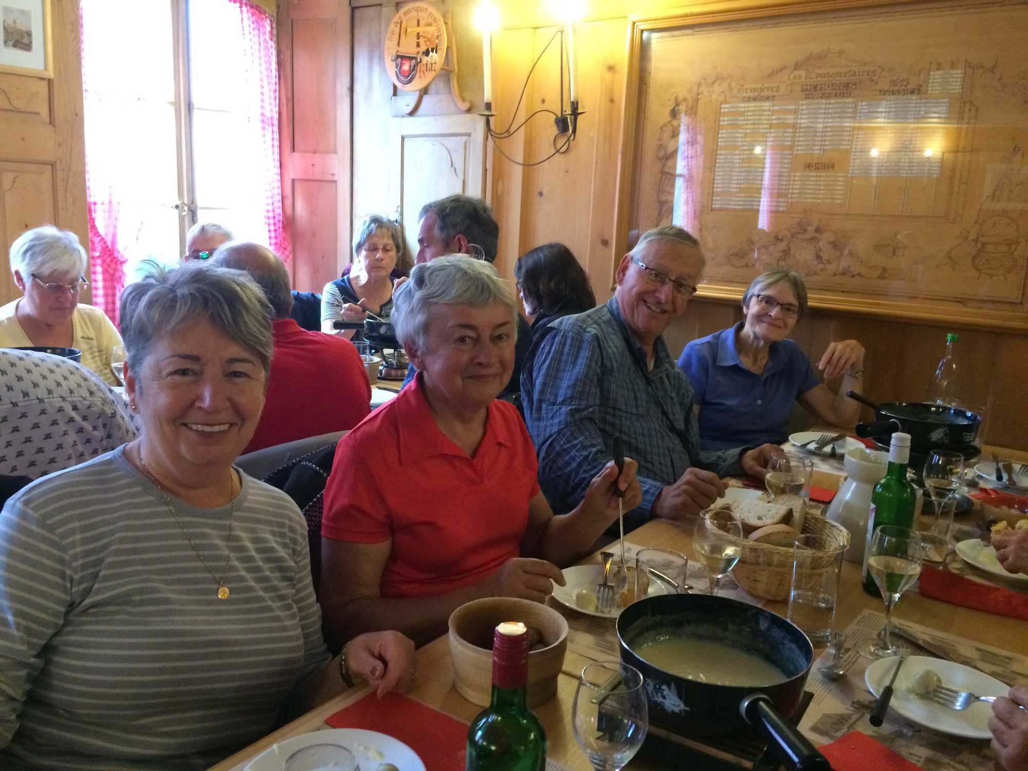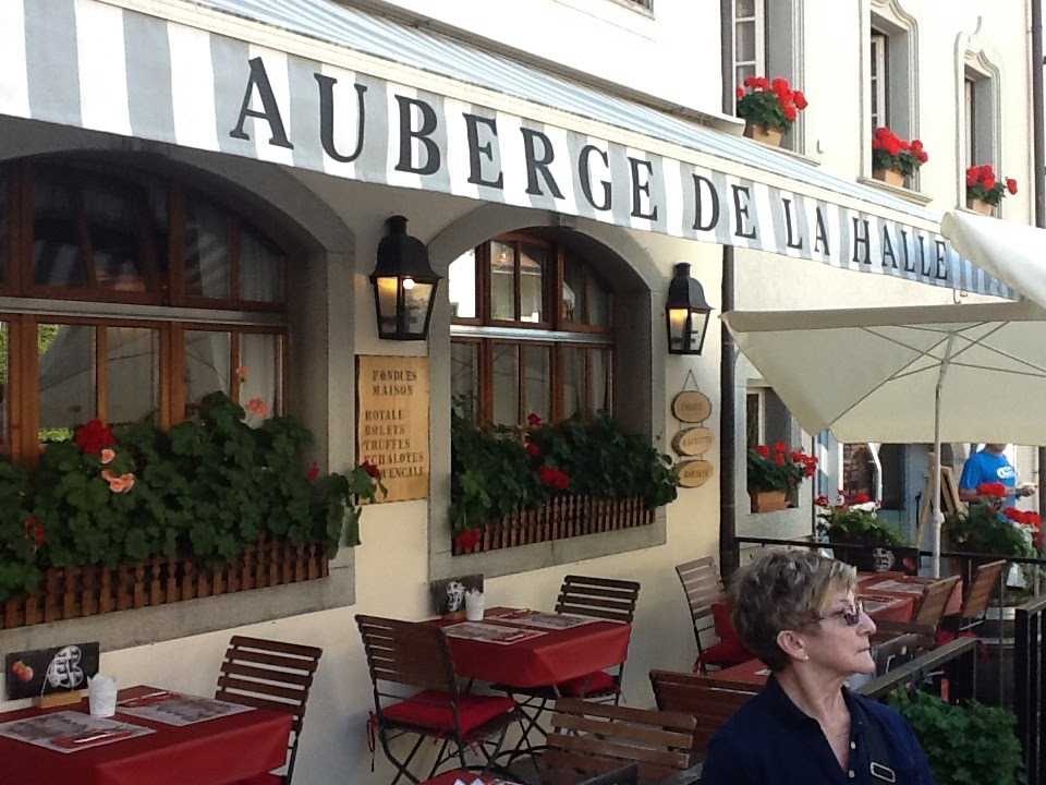 Nous sommes partis par la suite à Gruyère, car il y a le district de Gruyère et la ville de Gruyère, deux choses différentes. La ville est située à 33 km de la ville de Fribourg. La ville médiévale occupe une position remarquable sur un éperon rocheux qui domine la vallée de la Sarine. Wow! C’est là que nous avons pris notre dîner, à l’Auberge de la Halle, l’endroit idéal, évidemment, pour une fondue suisse dans un restaurant typique et plus que centenaire avec un service rapide et courtois.