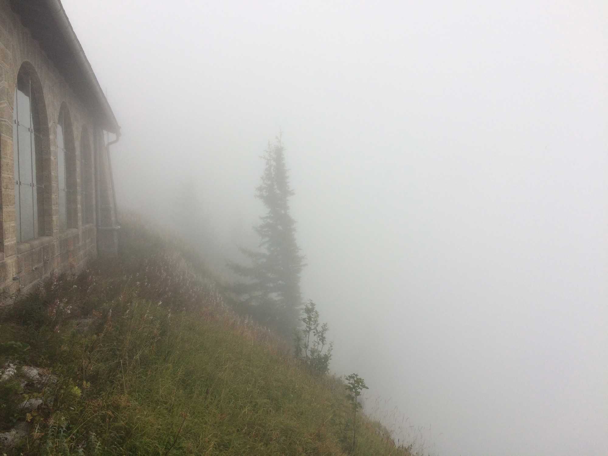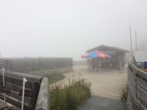 de forme arrondie, nous amène à un énorme ascenseur d’époque, dont l’intérieur est en or et en bronze poli. Cet ascenseur nous fait grimper dans un rocher sur 124 mètres (406 pieds) en 40 secondes. Nous voici rendus au sommet où l’on peut voir et visiter ce fameux bâtiment du Chancelier. Nous avons une vue restreinte de la région car il faut avouer que nous sommes dans le brouillard, dans les nuages. Beaucoup d’histoire. Et notez que la bière est moins dispendieuse que le café!