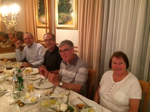 J’ai profité de l’occasion pour offrir une photo de groupe, faite par des professionnels, tous habillés en mineur, que je remets à nos voyageurs au départ de la mine de sel. Cette visite nous a creusé l’appétit, il est temps de dîner. Nous prendrons le repas à l’hôtel Konigssee, tout près du lac. Le trajet qui nous sépare de notre repas, plus ou moins 20 minutes, nous permet de nous calmer et de nous « remettre » de notre dernière expédition. Le site est enchanteur, on prend le temps de savourer le moment présent. Le repas est excellent, comme tous les repas jusqu’à maintenant d’ailleurs.