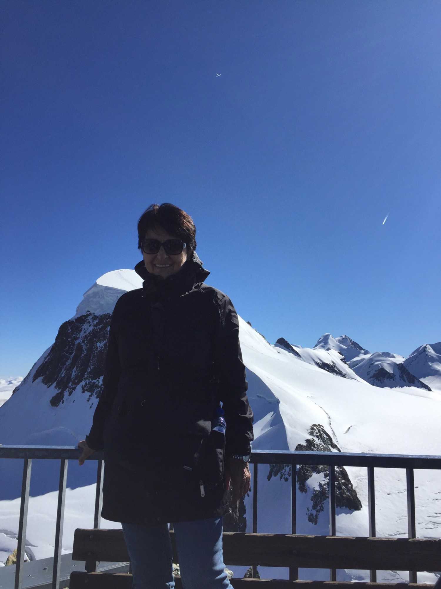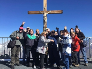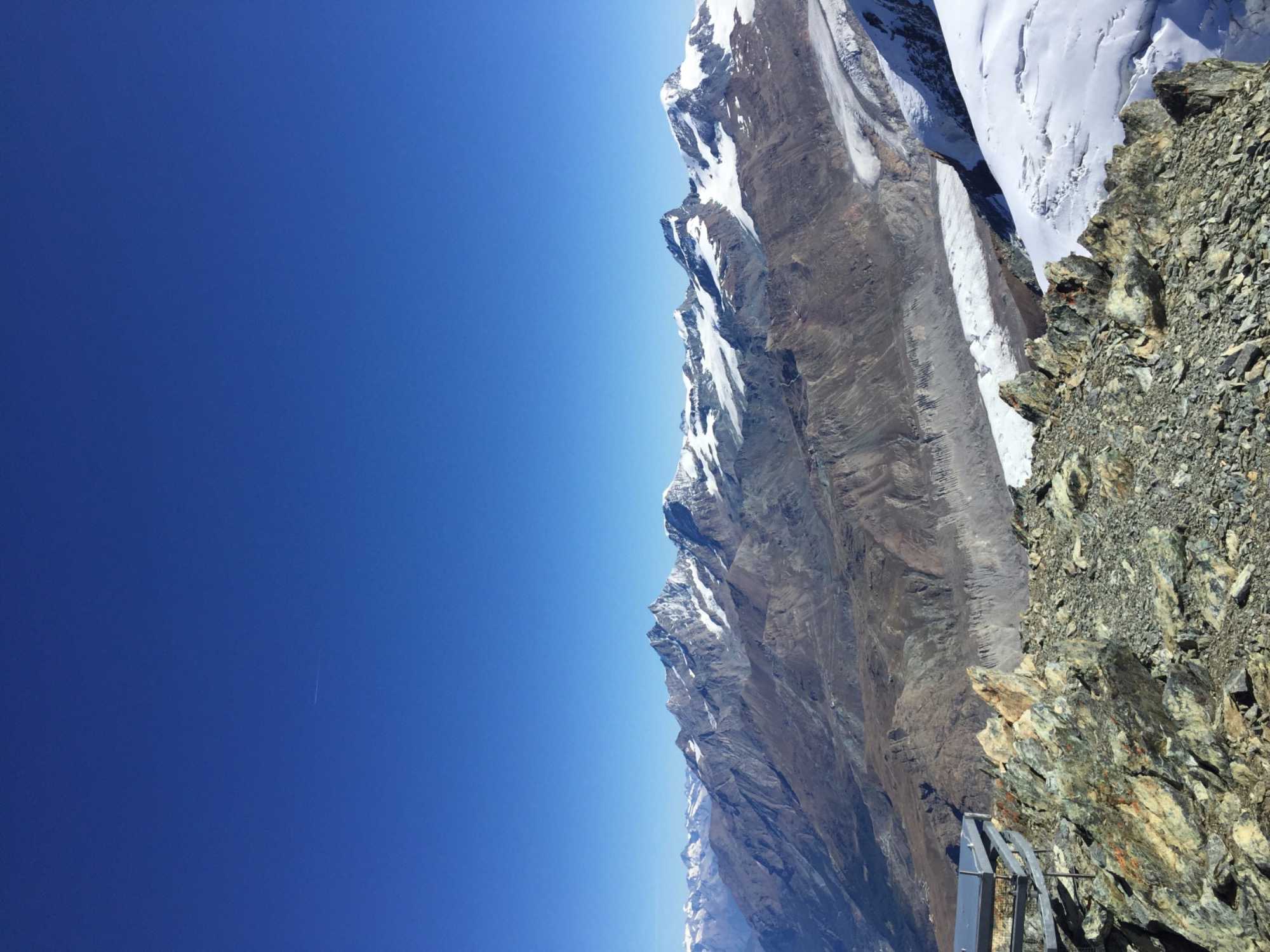 A notre arrivée au sommet du petit Cervin, d’une hauteur atteignant 3820 mètres d’altitude, une plate-forme attendait là, pour nous offrir une vue panoramique à 360° sur les sommets environnants, dont celui du Cervin. Une vue époustouflante, quasi indescriptible! Le restaurant qui s’y trouvait (sur la face sud du Petit Cervin) est le plus haut d’Europe. Certaines personnes sont restées plus longtemps en flânant, aussi dans la boutique souvenirs. D’autres, plus téméraires ont décidé de poursuivre l’excursion, en tentant de se rendre encore plus haut (le Matterhorn), soit au sommet culminant à plus de 3883 mètres d’altitude. Toutefois, il est inaccessible par téléphérique. Ceux qui ont tenté l’expérience, ont donc dû emprunter un ascenseur puis ensuite des escaliers, pour y accéder. Tout là-haut, les gens ne parvenaient plus à trouver les mots, pour décrire une telle beauté naturelle. Nous avons même constaté, que certaines personnes du groupe y vivaient, un retranchement intérieur personnel si intense et profond, qu’ils étaient réellement attendrissants à observer.