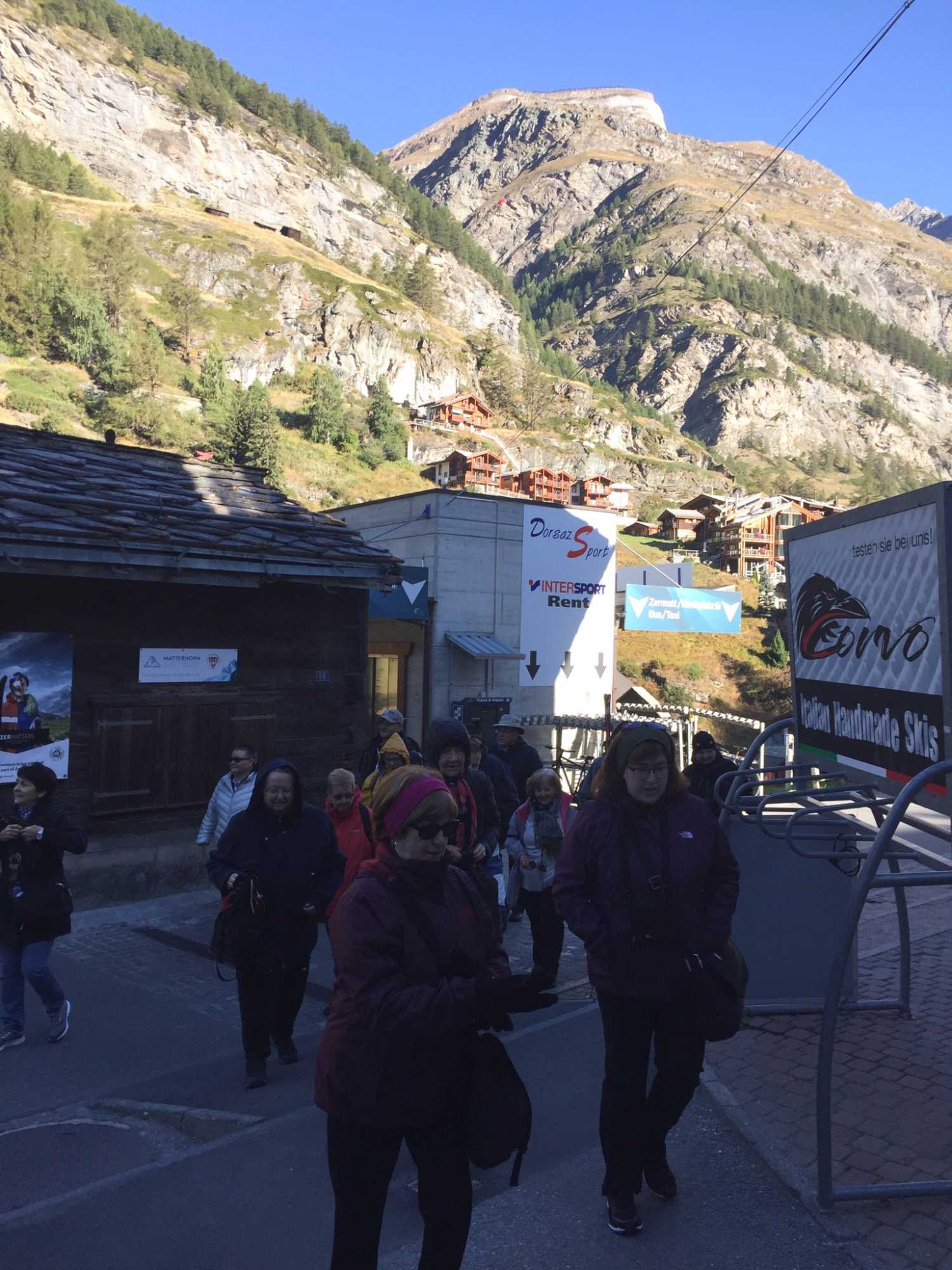 Quant à Zermatt, sa situation au pied du Cervin et au cœur d’une immense région de tourisme pédestre et de sport d’hiver, en fait l’un des villages de vacances, les plus attractifs au monde. Chacun a pu le découvrir à son rytmne et selon ses goûts. En effet, le temps libre accordé au groupe fut grandement apprécié. Il faisait un temps parfait (25 degré celsius au soleil ), il y avait un ciel bleu sans nuage ni pollution, de l’ambiance partout dans le village et de la bonne humeur à profusion. Zermatt est un petit village, qui dégage le bien-être et qui a su conserver son caractère authentique, tout en offrant d’innombrables possibilités d’excursions. Son développement est étroitement lié au sommet du Cervin. Son domaine skiable comprend 54 télésièges et remontées mécaniques et 360 km de piste. La région « Matterhorn Glacier Paradis » est le domaine skiable d’été le plus grand et le plus haut d’Europe. De nombreuses équipes nationales de ski s’y entraînent à la belle saison. La région est également bien connue des alpinistes : c’est ici qu’aboutit la Haute Route, un itinéraire international très exigeant de plusieurs jours, qui part de la région du Mont-Blanc pour s’achever à Zermatt. Plus de 400 km de chemins sillonnent la vallée de la Matterhorn et mènent bien au-delà, comme les chemins muletiers partiellement pavés, datant du 13e siècle.