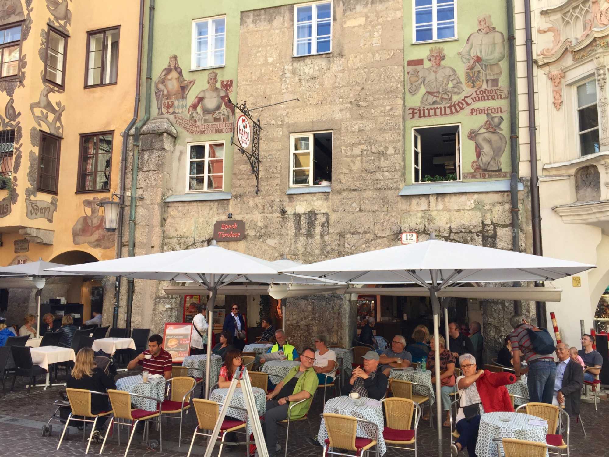 Nous profitons d’un dîner et de temps libre, afin que chacun puisse orienter sa visite, en fonction de ses propres intérêts : Certains vont au musée du violon, tandis que d’autres préfèrent se prélasser sur une petite terrasse pour un bon repas ou se promener dans Innsbruck en faisant du shopping. C’est une splendide ville que nous aimerions connaître davantage, mais le temps manque.