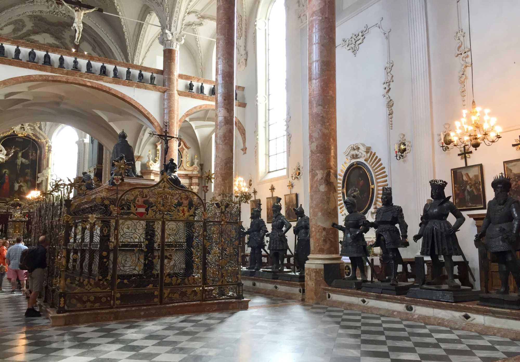 L’église Impériale : Surtout connue pour son originalité, l’église possède une belle richesse artistique. En y entrant, 28 sculptures d’hommes noirs y montent la garde « l’église des bonshommes noirs » . Deux curieuses constatations s’imposent : huit de ces hommes noirs sont des femmes et les sculptures en bronze (de taille réelle ) surveillent le tombeau d’un empereur et non de l’église. D’ailleurs, il constitue, le plus remarquable des tombeaux impériaux de l’Europe. Quant à son orgue, il est le plus spacieux et le mieux conservé de la Renaissance d'Autriche.