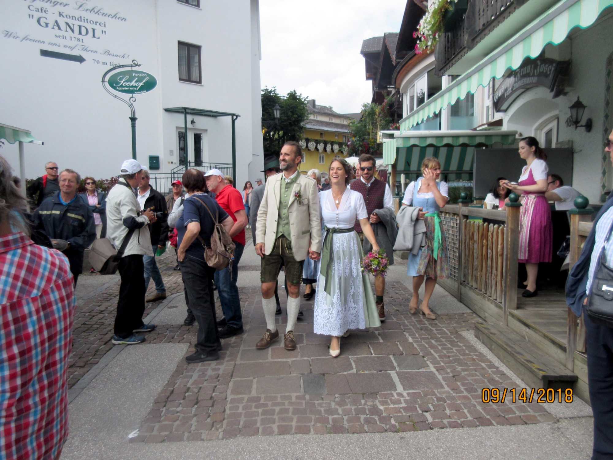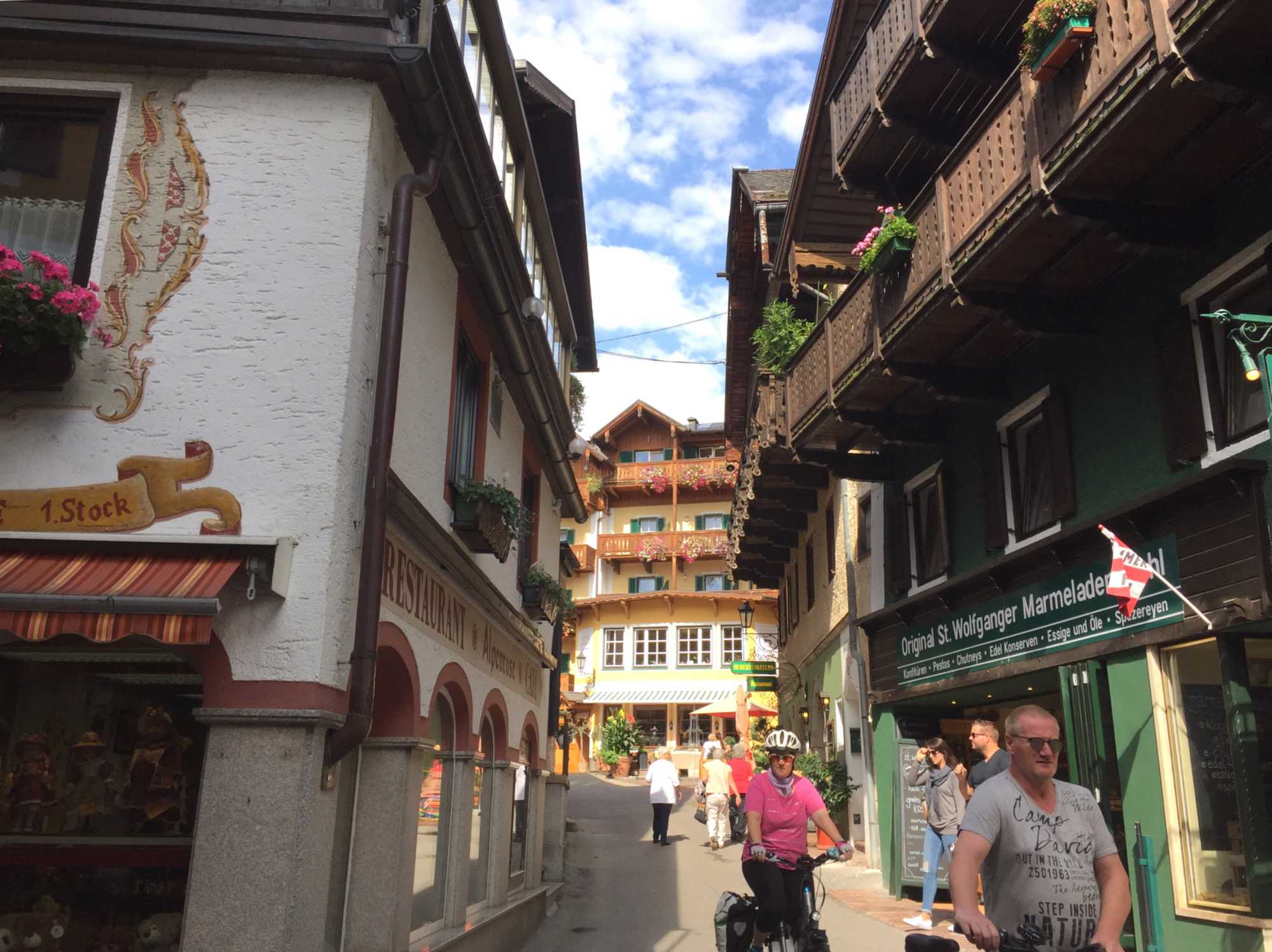 Continuation vers St‐Wolfgang, charmante ville aux chalets couverts de fresques, et où se trouve l’Auberge du Cheval Blanc. L’évêque Saint Wolfgang, érigea la première église sur la rive du Lac Wolfgang. Après sa canonisation en 1052, l'église devint un important site de pèlerinage. Dès l’époque médiévale, des maisons furent construites près de l'église. St-Wolfgang est également connue, grâce à l'opérette L'Auberge du Cheval-Blanc. C’est d’ailleurs à cette belle auberge, que nous arrêtons pour diner. Situé au bord du lac, c’est avec un magnifique paysage qui apaise, que nous dégustons, un excellent poisson (filet de truite meunière).