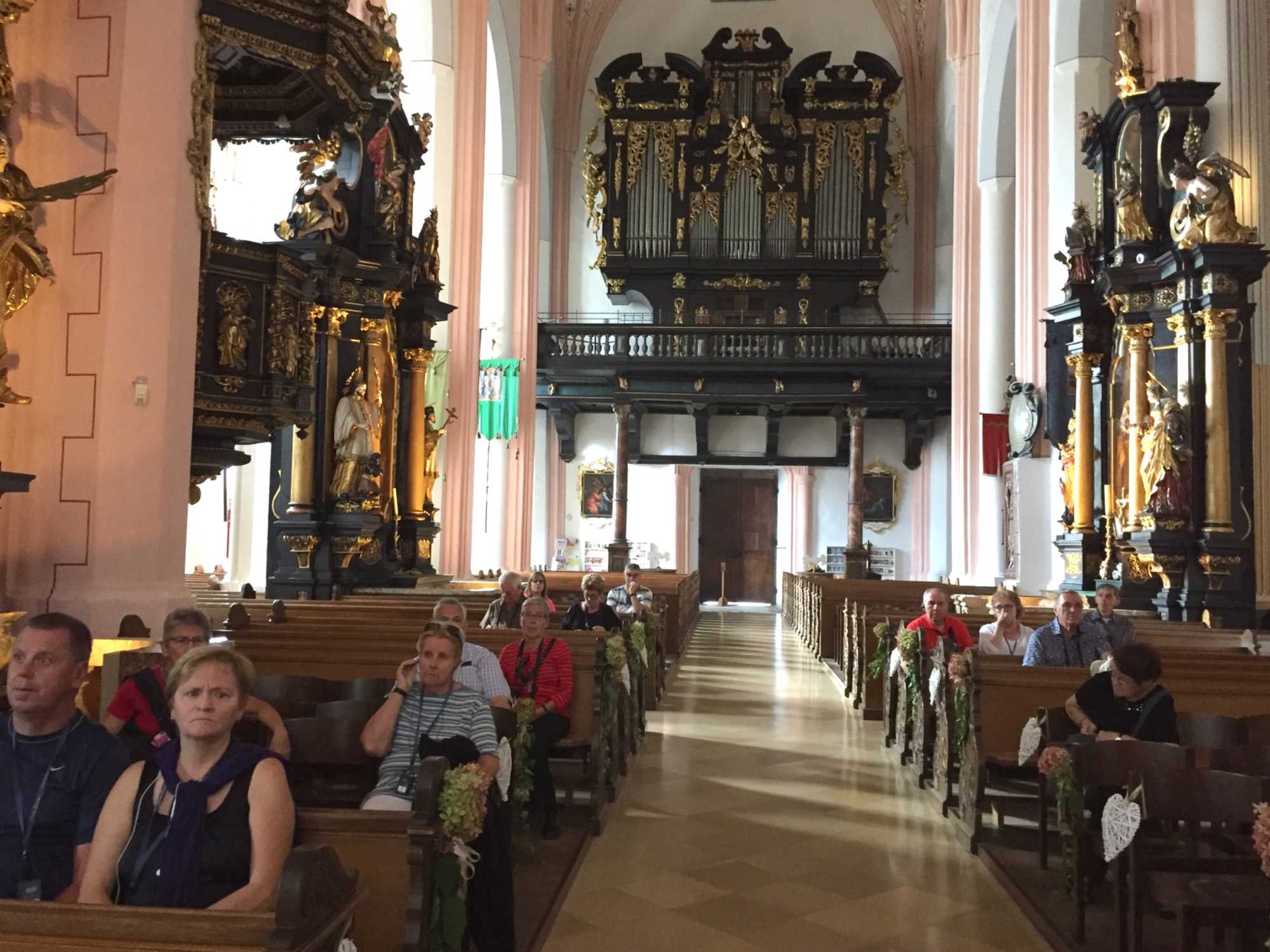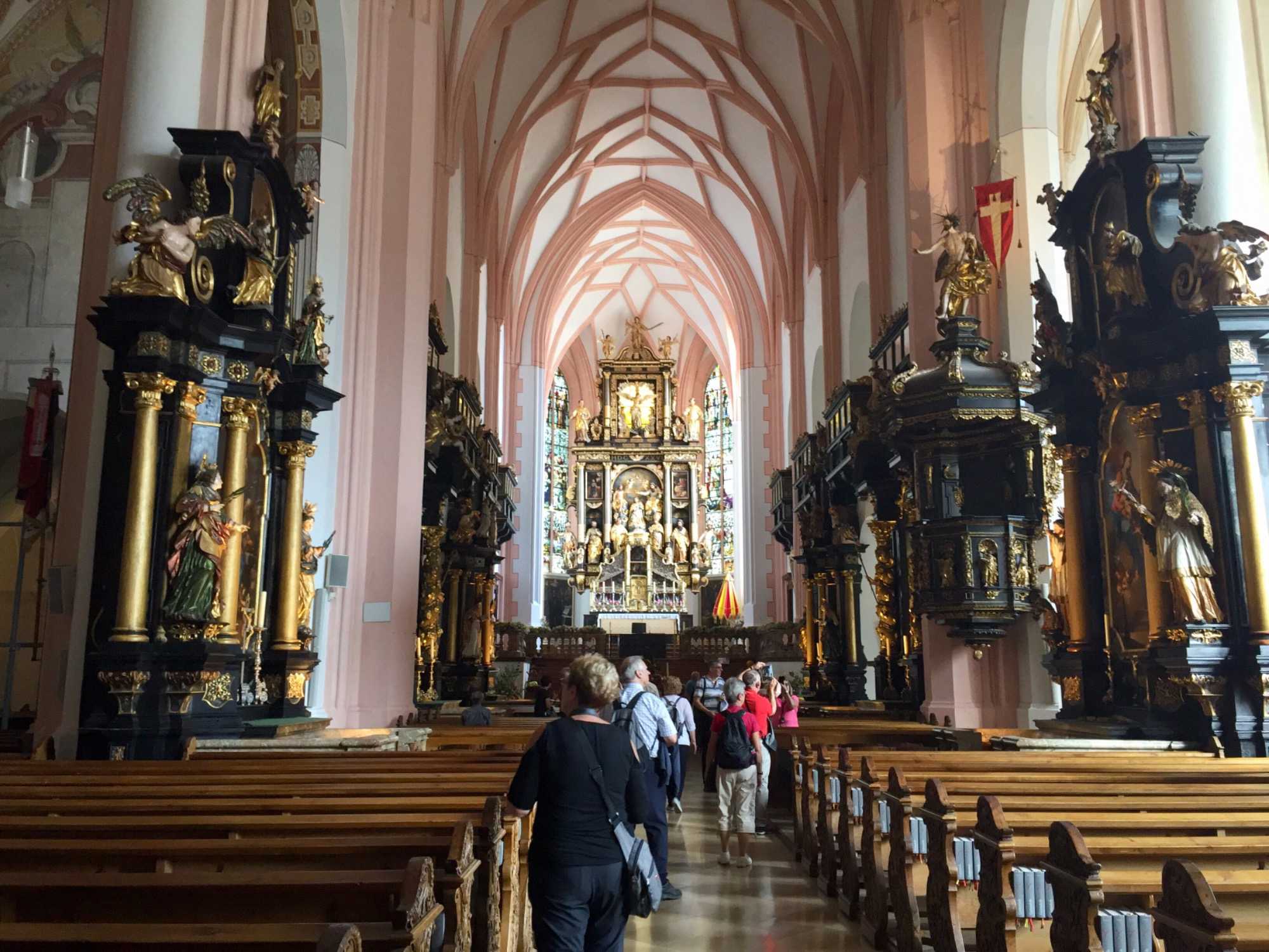 Ensuite, nous prenons la direction de Mondsee, pour y visiter son église paroissiale. Dès que nous y entrons, nous sommes étonnés par sa décoration intérieure, d’une grand beauté : somptueuse, de style baroque et grandement influencée par le peintre-sculpteur Meinrad Guggenbichler (1649-1723). C’est dans cette église qu’eût lieu, le tournage d’une scène du célèbre film, la mélodie du bonheur (The sound of Music) : soit celle du mariage du Baron Von Trapp et de Maria. Un succès international, bardé d'oscars et inspiré d’une histoire vraie.