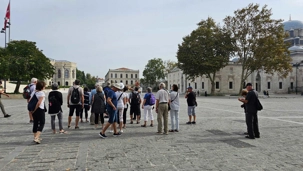 Située sur le point le plus haut d'Istanbul, Sainte-Sophie définit la vue panoramique de la ville. Ses quatre minarets et son dôme de plus de 30 mètres de diamètre constituent l'image la plus caractéristique de la métropole turque.