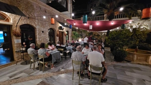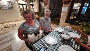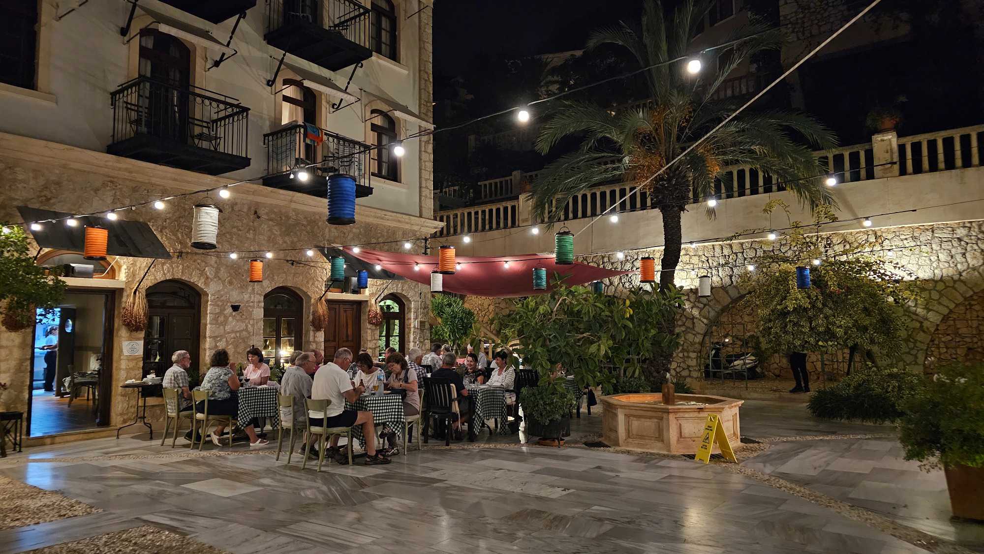 On reprend l' autobus, direction Kalkan, une station balnéaire très sympathique en Méditerranée où on passera la nuit à Patara Prince Hotel & Resort. C’est un bel hotel a flanc de montagne, mais malheureusement on arrive peu après 19 heures et la nuit est tombée. On ne peut profiter de la vue. C est un tres vieil tablissement comme en témoigne son ascenseur à 4 personnes sans porte intérieure. Ca cage est grillagée et l‘escalier en fait le tour comme on voie dans les tres vieux édifices. C’est un peu long d’orienter les valises aux bonnes chambres. Les chasseurs le feront pendant notre souper, encore ce soir a l extérieur, dans la cour intérieure de l hotel. Dommage de ne pas pouvoir profiter de la vue. Le souper est bon mais la longue route de ce jour vient a bout de mes amis qui ne désirent que de se rafraîchir et aller au lit. On a eu la visite de nos amis félins au souper. Les amis voyageurs prennent goût a les gâter ;)