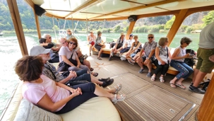 Au retour, nos voyageuses ont envahi le pont supérieur… petit dodo au soleil ou à l' ombre du toit, détente totale. Seulement Jacques et Jean ont réussi à s'y faufiler.