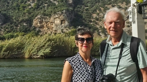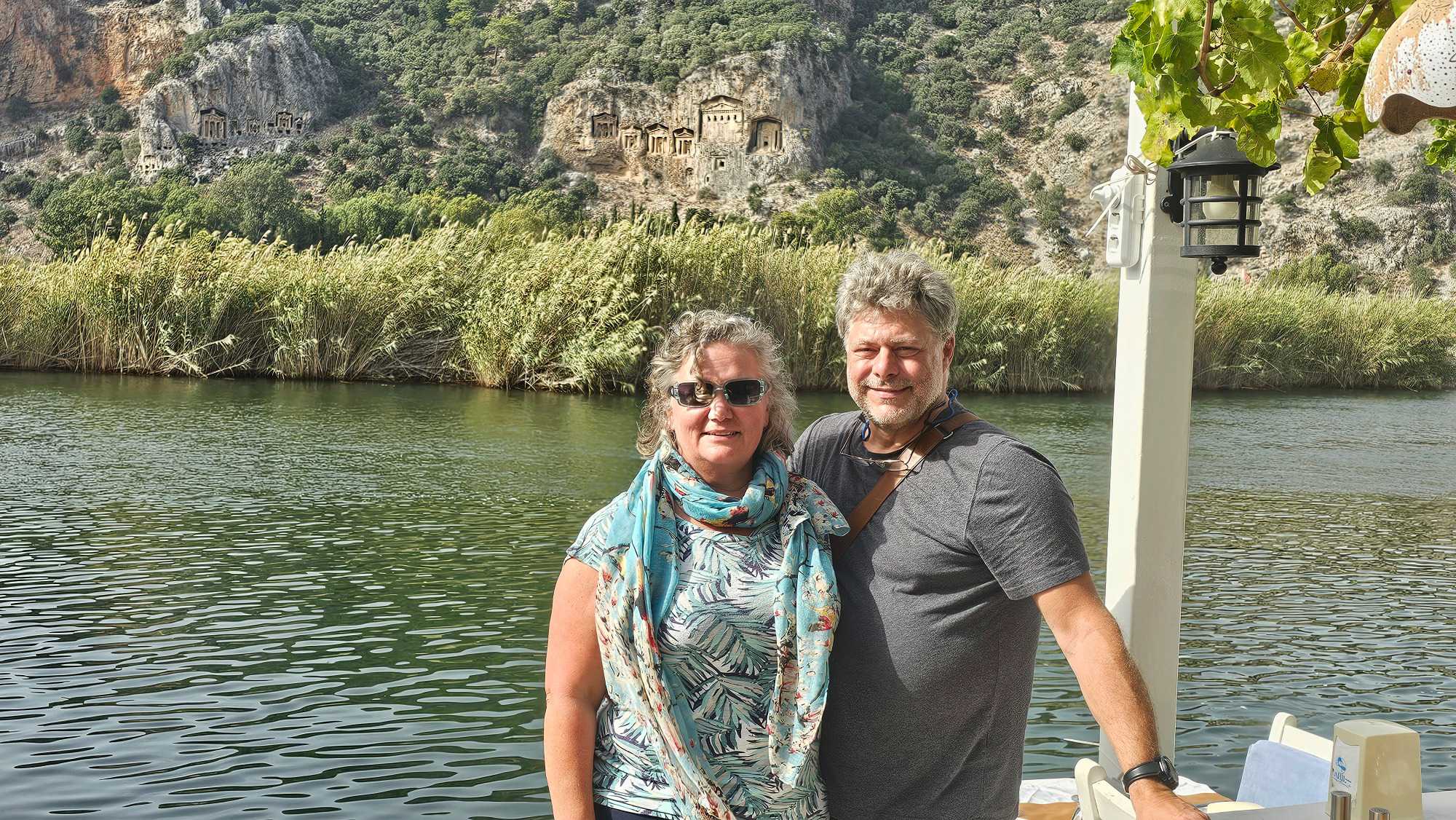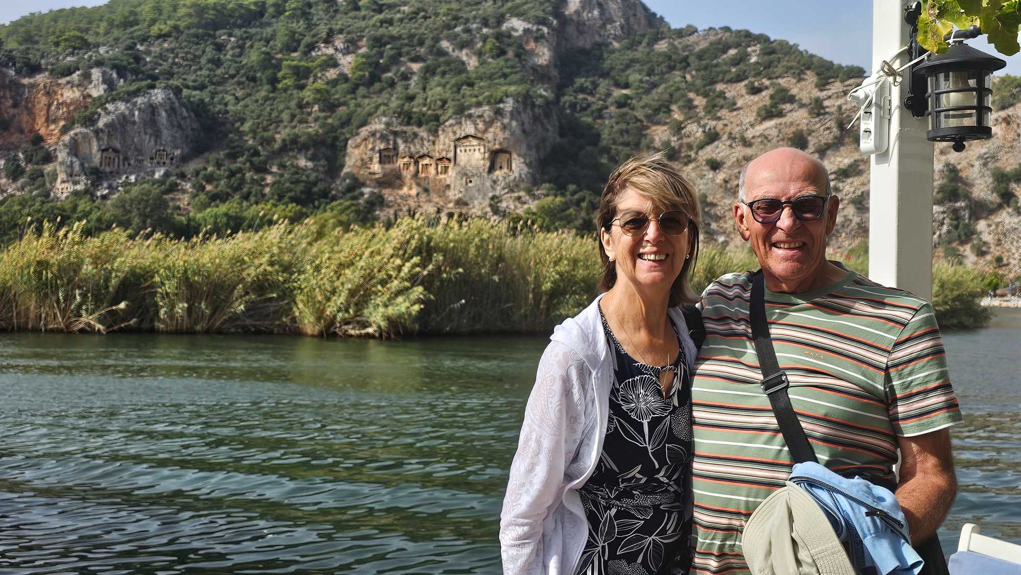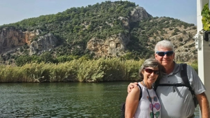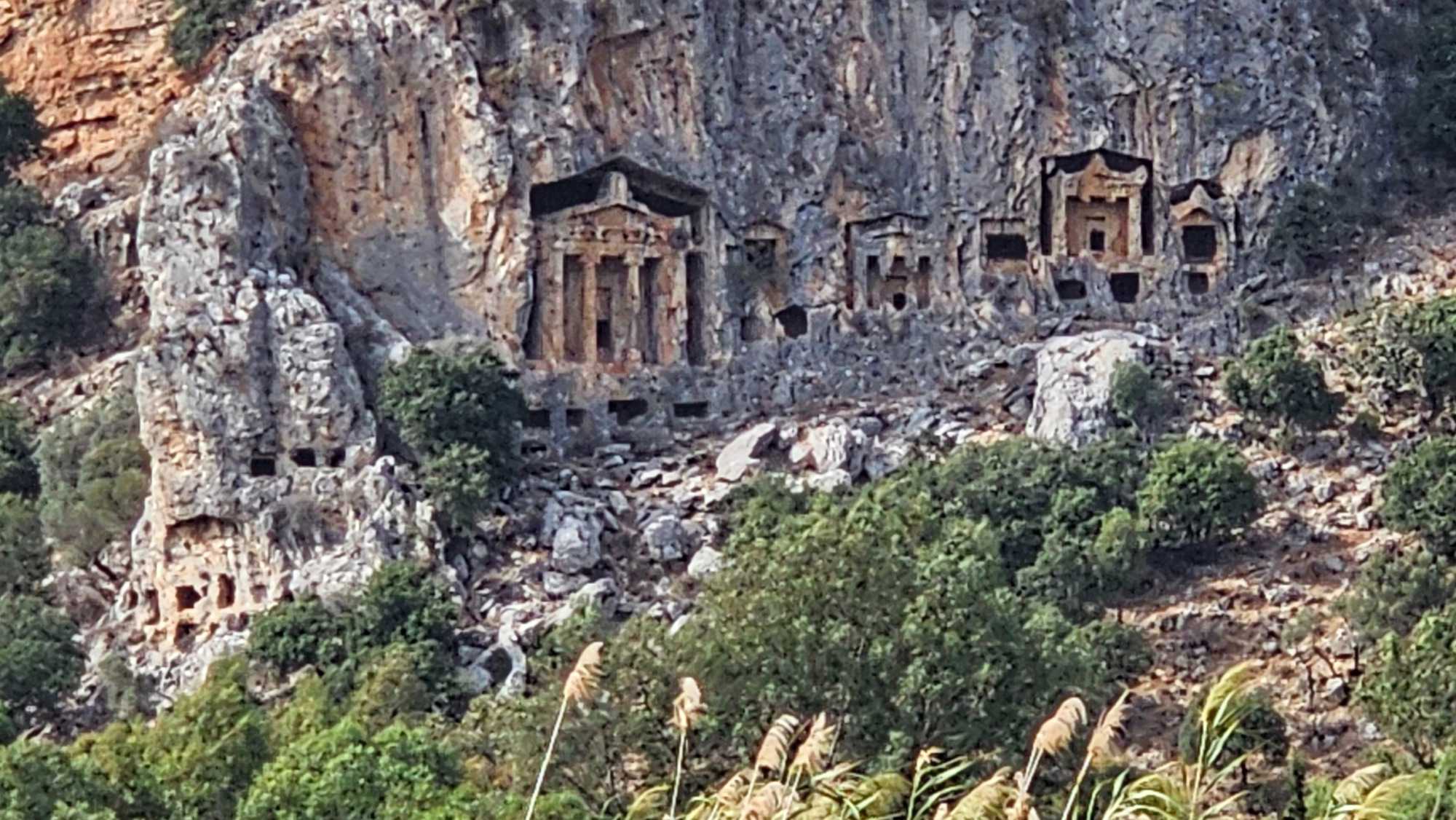 En tournant le dernier méandre, avant d' arriver au restaurant, on aperçoit à flanc de montagne des tombes troglodytes Lyciennes.