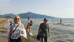 On reprendra notre embarcation jusqu'à la plage Iztuzu, l’une des plus belles plages de la région, accessible que par mbarcation. Elle est mondialement connue pour ses tortues Caretta qui viennent pondre leurs œufs ici entre juin et septembre A cette période de l’année, Elles ont quitté la région mais il arrive d’en observer occasionnellement. On a été chanceux, il y en a eu une qui nous salué notre arrivée au quai. Bon, elle était timide… un clin d' œil et elle replonge.