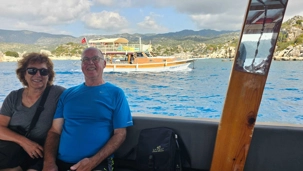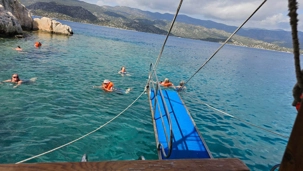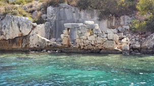 De retour à notre bateau, on traverse le détroit pour longer l’île de Kekova et observer les ruines de la ville antique engloutie au IIe siècle, lors d’un grand tremblement de terre. On voit à travers l' eau limpide des séquelles des parties de la ville effondrées dans la mer. On distingue même les murs d’un petit port. C’est très intéressant. L’eau est si limpide…