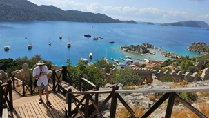 Üçağız est également une étape pratique avant ou après la visite du château de Simena et de la cité engloutie de Kekova. Les destinations sont si proches que depuis le sommet du château de Simena, situé à 45 mètres au-dessus du niveau de la mer, vous pouvez voir de l'autre côté de la baie et apercevoir les petites maisons en bois et en pierre, les restaurants et les pensions (maisons d'hôtes) d'Üçağız.