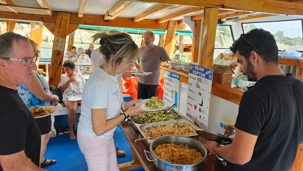 On dîne sur le bateau puis c' est le temps du retour au port. Il y a eu presque une mutinerie pour qu' on puisse rester dans la baie plus longtemps..
