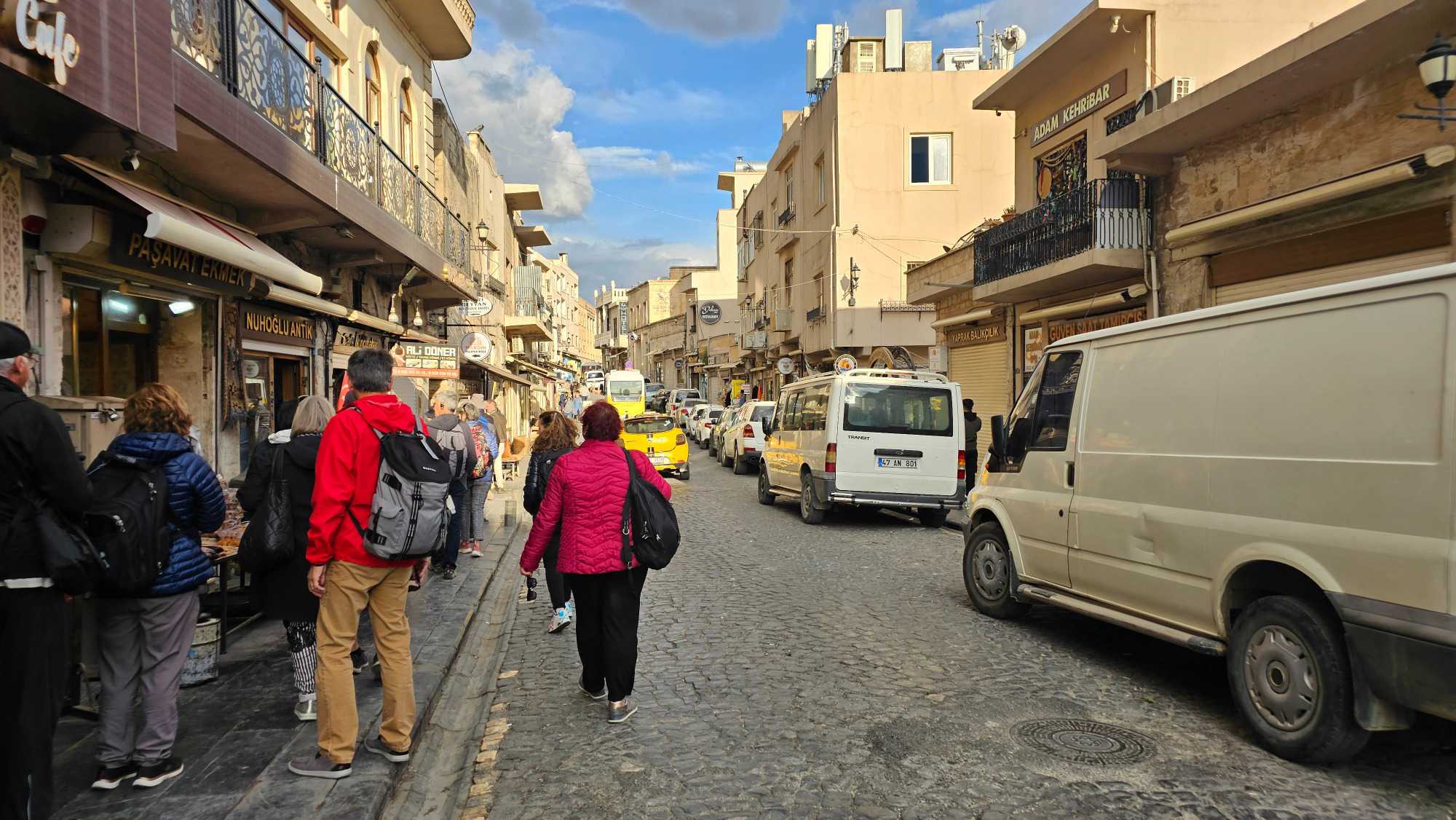 Puis, direction la vieille ville de Mardin pour dîner. En arrivant, on admire cette ville a flanc de montagne qui lui donne un aspect particulier dont la pente descend vers la plaine mésopotamienne. Le sommet de la crête est occupé par la citadelle historique de la ville. C’est une très vieille ville, au confluent des civilisations turque, kurde, arabe et syriaque.