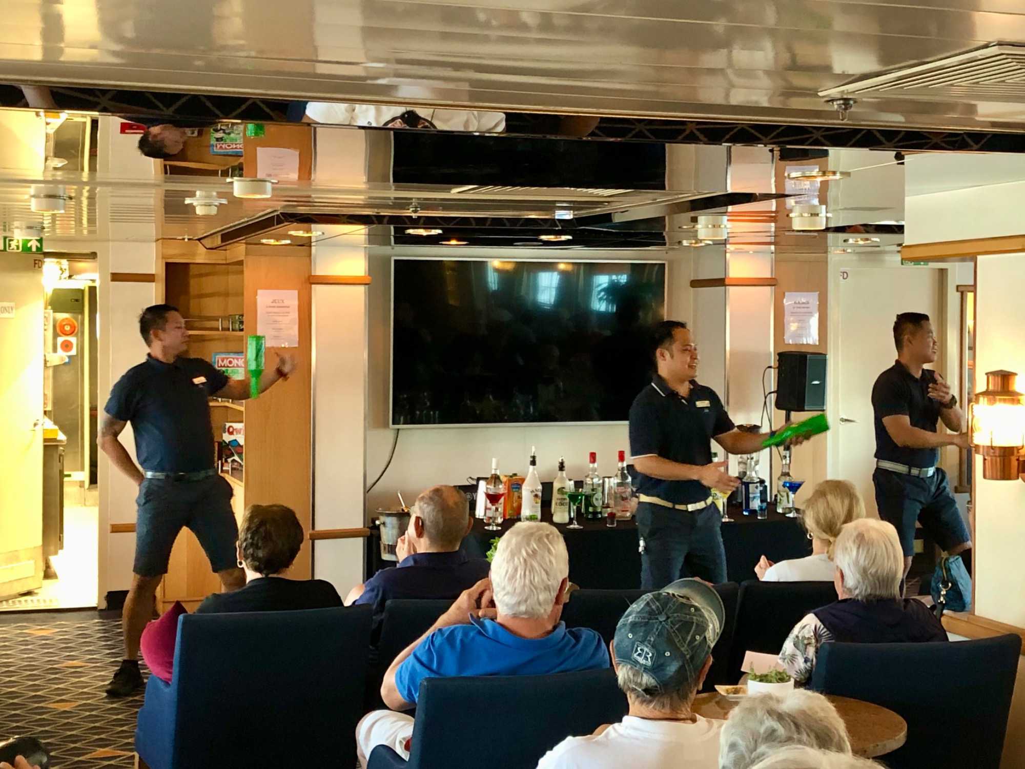 Cet après-midi, les voyageurs en profite pour relaxer au bord de la piscine ou se faire chouchouter au SPA. Le navire offre aussi d’assister à des démonstrations de cuisine en compagnie du chef et de fabrication de cocktails en compagnie des barmans qui s’amusent à jongler avec les bouteilles pour ensuite faire goûter le tout. Puis, un conférencier a fait une présentation sur la renaissance de la culture Corse qui a beaucoup plu aux participants.