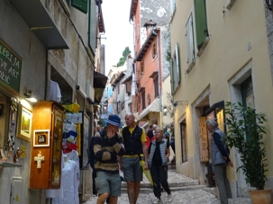 Nous reprenons la route après notre succulent dîner pour Rovinj, très belle ville située sur la côte ouest de la presqu’île. Construite sur un éperon rocheux sur la côte ouest de l'Istrie, Rovinj était une île avant d'être reliée au continent en 1763. La population n’est que de 15 000 habitants. On l'appelle la « petite Venise croate ». Notre guide nous donne les explications de la ville afin de se promener librement et voir ce qu’il y a à voir.