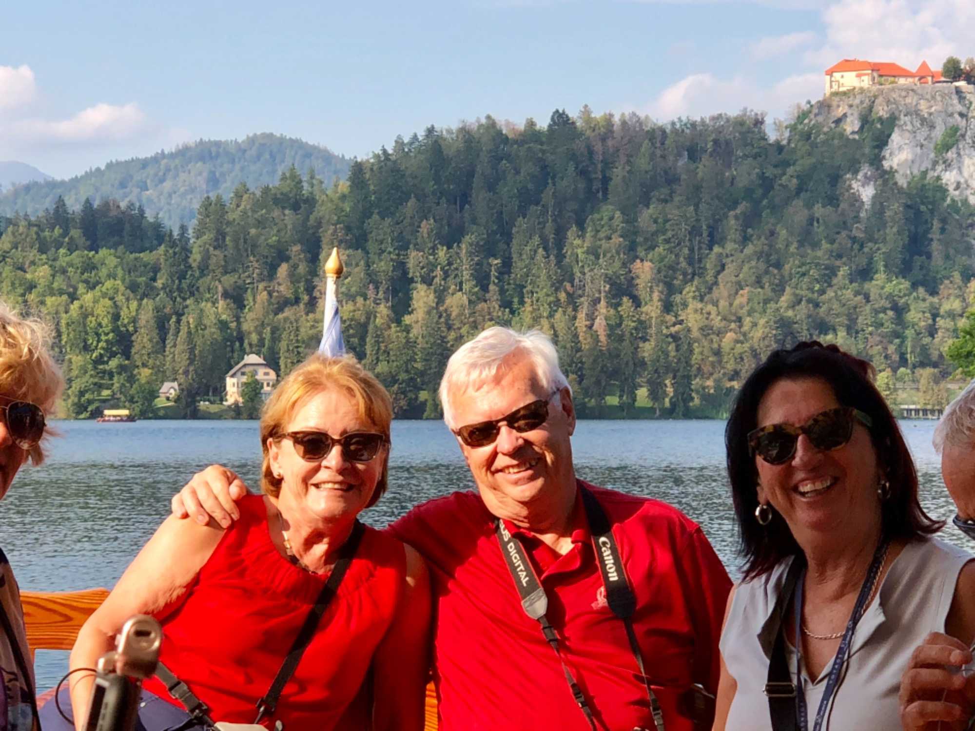 Située sur le lac glaciaire du même nom, l’unique île du pays réserve son lot d’émerveillement et de légendes. Cernée par les crêtes enneigées des Alpes juliennes, qui s’étendent entre la Slovénie et l’Italie, cette pépite insulaire fait face à la nappe émeraude des eaux avec une certaine grâce. En son coeur, l’église néoclassique du 15e siècle Sainte-Marie de l’Assomption s’élève vers les cieux. Construit sur les ruines d’un temple dédié à la déesse slave de l’amour et de la fécondité, Siwa, cet édifice occupe toujours une place importante dans le coeur des habitants. Selon la tradition, gravir ses 99 marches et faire retentir ses cloches porterait bonheur aux futurs mariés. Attention aux nouveaux mariés, il faut en plus monter la mariée dans ses bras jusqu’en haut… Que vous ayez déjà convolé ou non, vous pouvez bien sûr tenter l’expérience. Mes voyageurs se sont contentés de monter tranquillement et d’aller faire sonner les cloches pour s’attirer de la chance. Pour les plus braves nous sommes montés au haut de la tour du clocher haute de 52 mètres pour voir l’horloge astronomique et le paysages. C’est maintenant le temps de revenir en ville. Quelle magnifique journée de découverte avec encore au retour les paysages de ces hautes montagnes souvent transformées en hiver en centre de ski.