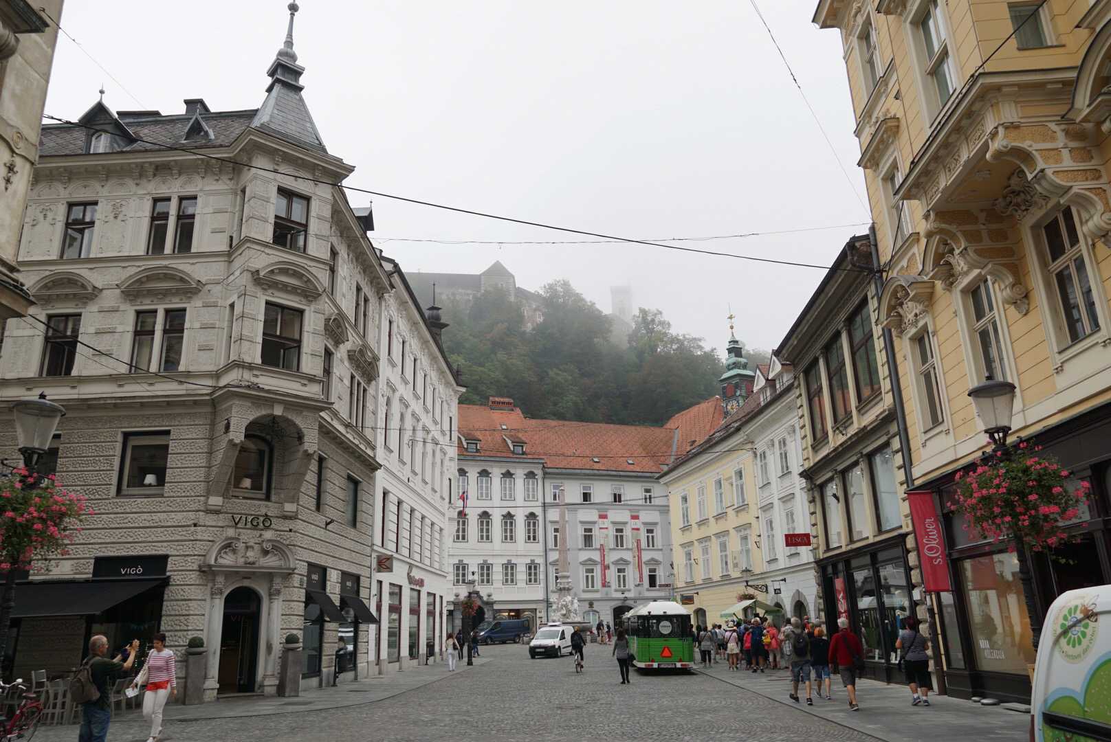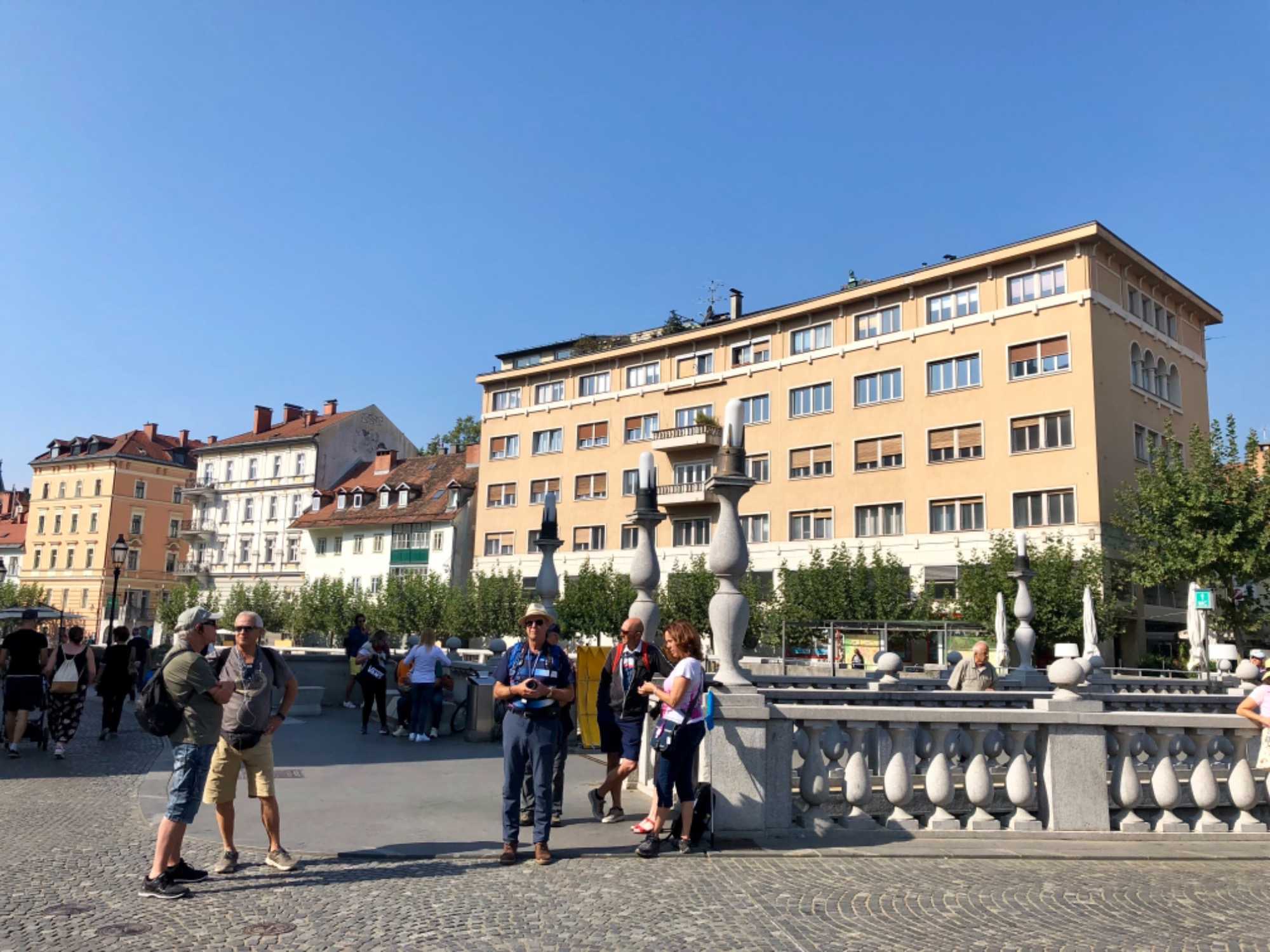 Après une bonne nuit de repos et un excellent petit-déjeuner servi au 20ième étage de notre magnifique hôtel, nous sommes en forme pour partir à la découverte de la tranquille capitale de la Slovénie.