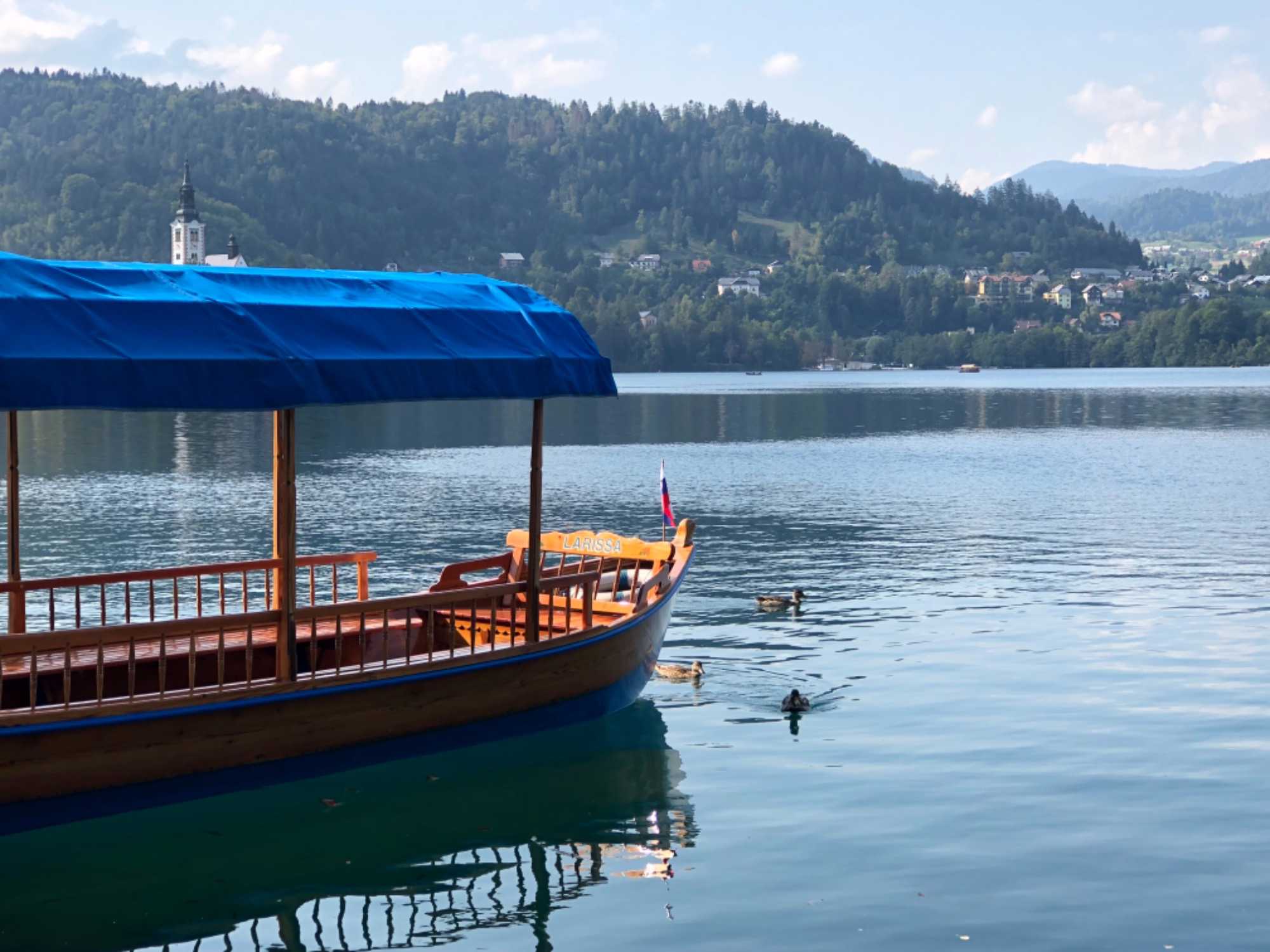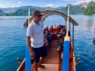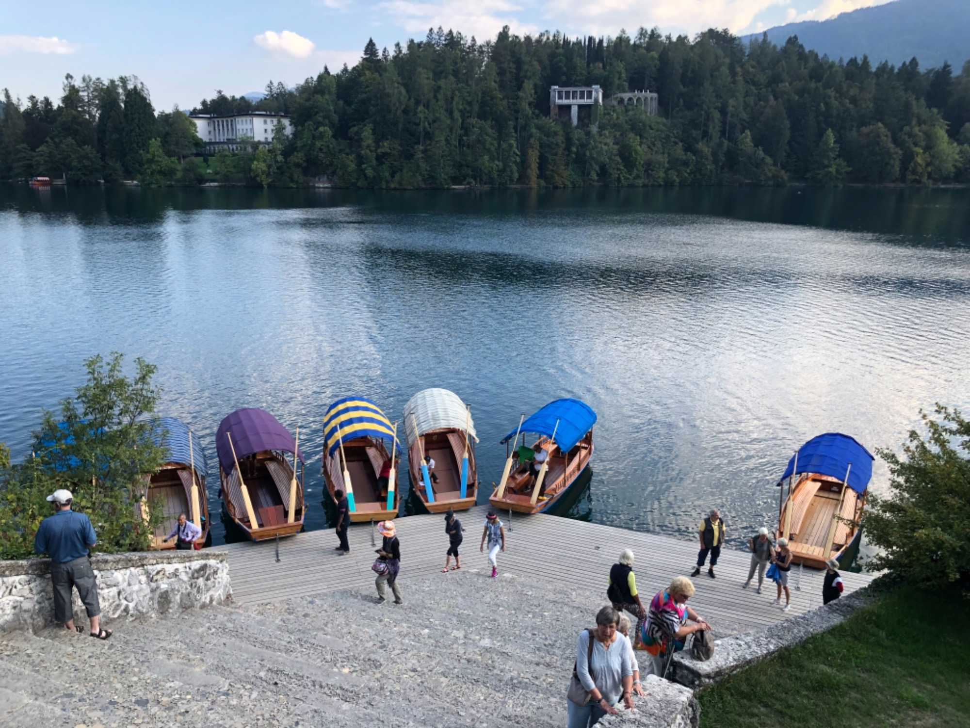 Bled est un des fleurons du tourisme slovène. Le décor est tellement enchanteur que nous prenons des centaines de photos! Après avoir quitté le château nous nous dirigeons vers l’embarcadère pour prendre une gondole « pletna », typique de la région. Cette barque conduite par un seul rameur embarque plus de vingt personnes et à lui seul il fait glisser son embarcation sur l’eau limpide et calme du lac de Bled. Une superbe ballade et amusante en plus. J’ai même tourné un petit vidéo que nous vous ferons suivre prochainement. Ces rameurs sont de pères en fils afin de continuer la tradition. Si une famille n’a pas de garçon pour continuer la tradition ils peuvent vendre leur droit. Ils sont aussi jumelés aux gondoliers de Venise. Les voir ramer c’est découvrir tout un art. Nous nous sommes rendus avec ce transport authentique sur l’île de Bled, l’une des plus belles destinations slovènes.