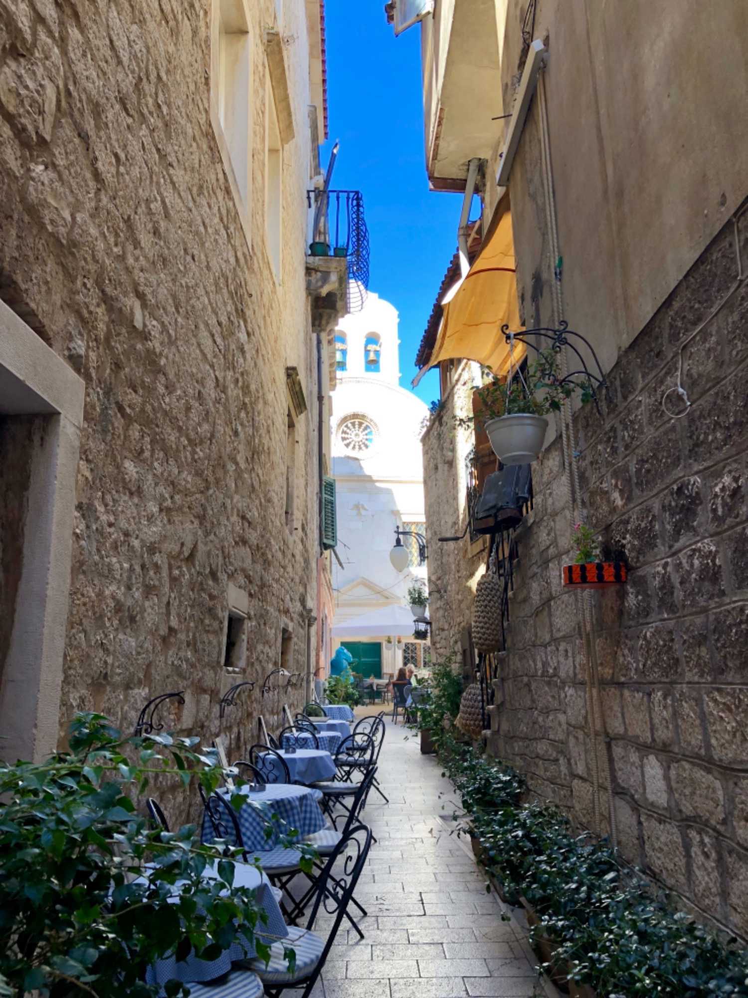 Après cette belle promenade, nous nous dirigeons vers notre restaurant pour dîner. Un autre festin! Nous avons mangé dans la charmante ville de Sibenik cette ville médiévale. Notre restaurant se trouvait en plein cœur de la ville et c’était d’après la guide le plus recherché des restaurants de la ville. C’était délicieux et assis sur la terrasse nous nous sommes fait chauffer au soleil.