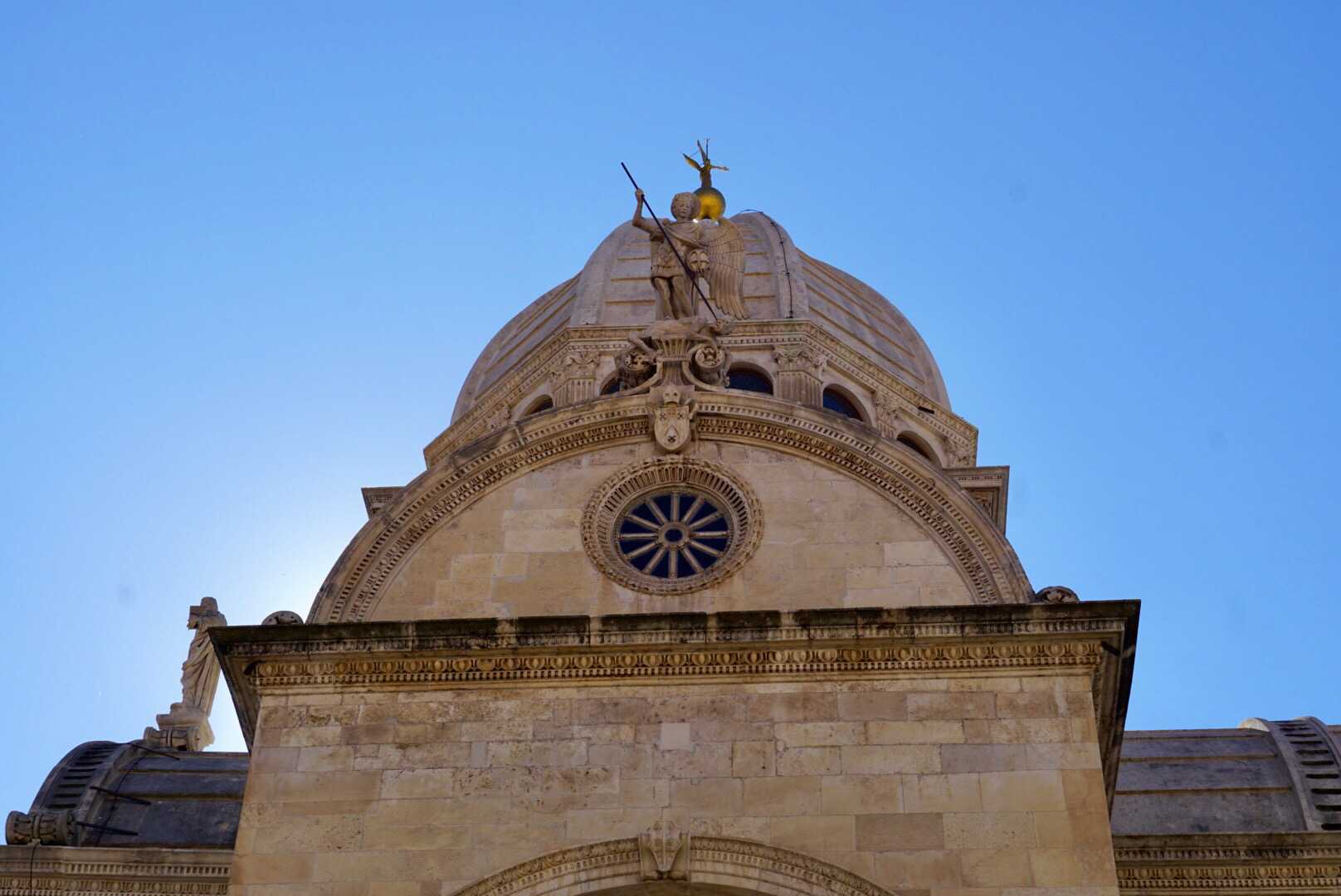 La visite guidée de la ville, incluant l’entrée à la cathédrale St-Jacques, chef-d’œuvre de la Renaissance croate, et sous la protection de l’UNESCO. La cathédrale a été construite entre 1431 et 1535 par des artisans italiens et dalmates; elle témoigne des échanges considérables qui se sont déroulés entre l'Italie du Nord, la Dalmatie et la Toscane du XVe au XVIe siècle dans les domaine des arts, et illustre la fusion réussie de l'art gothique et de la Renaissance. Elle fut en son temps le seul bâtiment d'Europe dont la voûte en pierre fut construite sans mortier ni charpente en bois. La cathédrale Saint-Jacques est ornée de 71 visages sculptés.