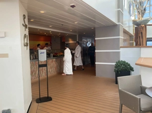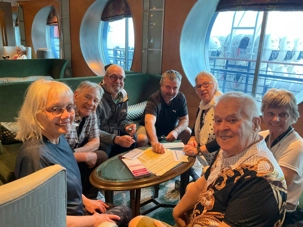 On remarque une belle complicité entre nous lorsqu’au cours de cette première journée en mer, nous nous rencontrons ici et là près des ascenseurs ou ailleurs et nous avons une foule de choses à nous raconter. La table d’hospitalité mise à la disposition de Voyage Louise Drouin a pour rôle l’exploration des diverses activités prochaines à bord du navire mais il semble aujourd’hui que tous étaient déjà des pros des croisières.