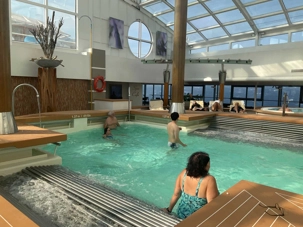 Nos voyageurs font le tour du navire et se familiarisent avec les spas. Peut-être que certaines dames ont déjà choisi un moment pour un soin au centre de santé haut de gamme, car il est de notoriété publique que les croisières sont …exténuantes!!!
